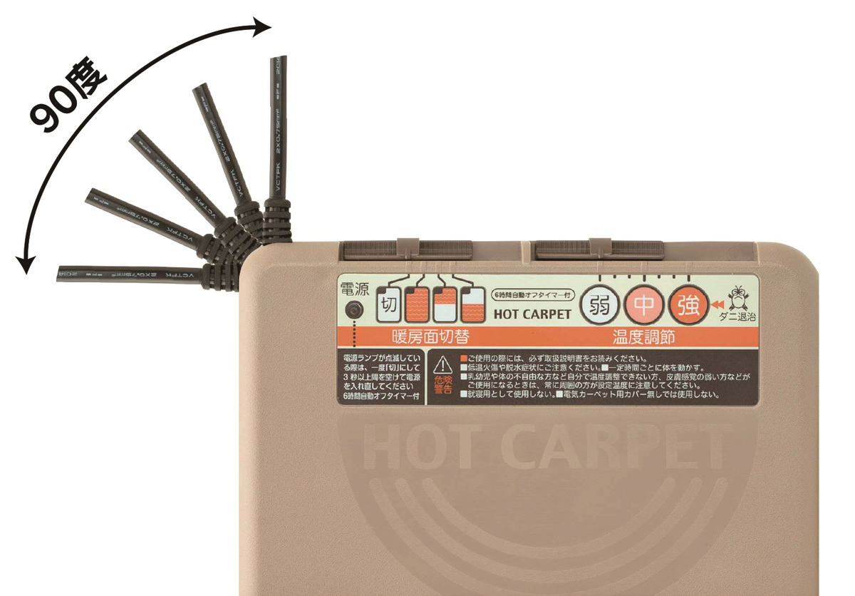 温度調節機能付きでお好みの暖かさに簡単に設定可能です。さらに6時間オフタイマー搭載で就寝時や長時間の使用も安心。暖房面切り替え機能により、足元だけや全体など必要に応じた範囲を効率よく暖められます。コードは90度コードフリーターン機能付きで、コンセントまわりの取り回しもスムーズです。厚手の仕様とクッション性により、床衝撃音低減性能も高く、リビングや寝室、子ども部屋、ワンルームなどにおすすめです。