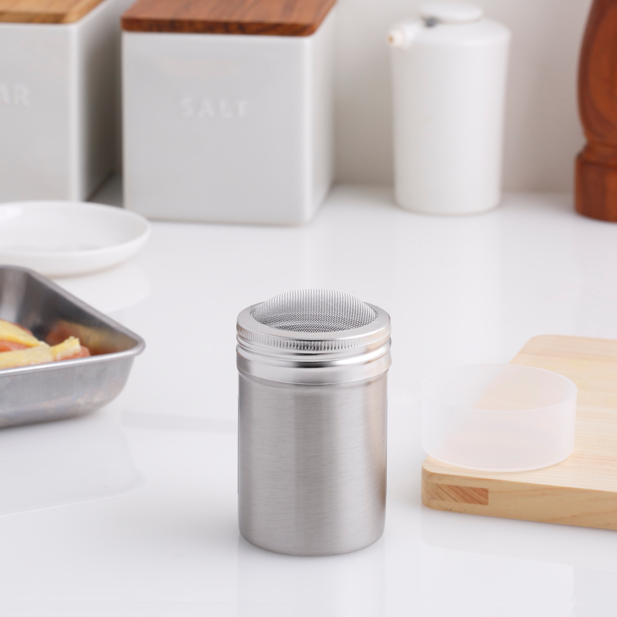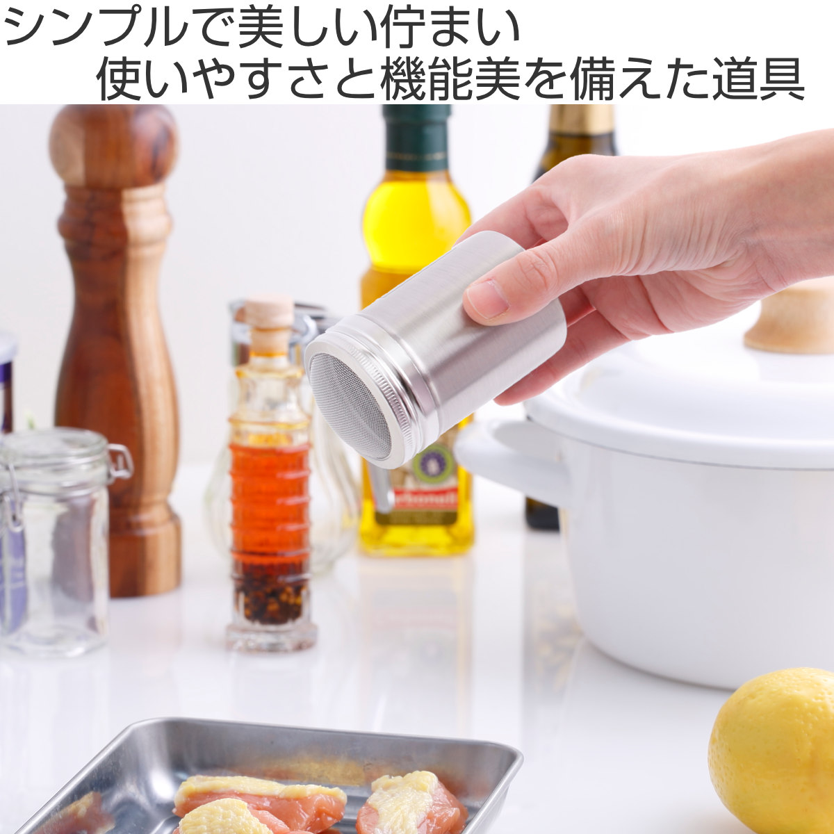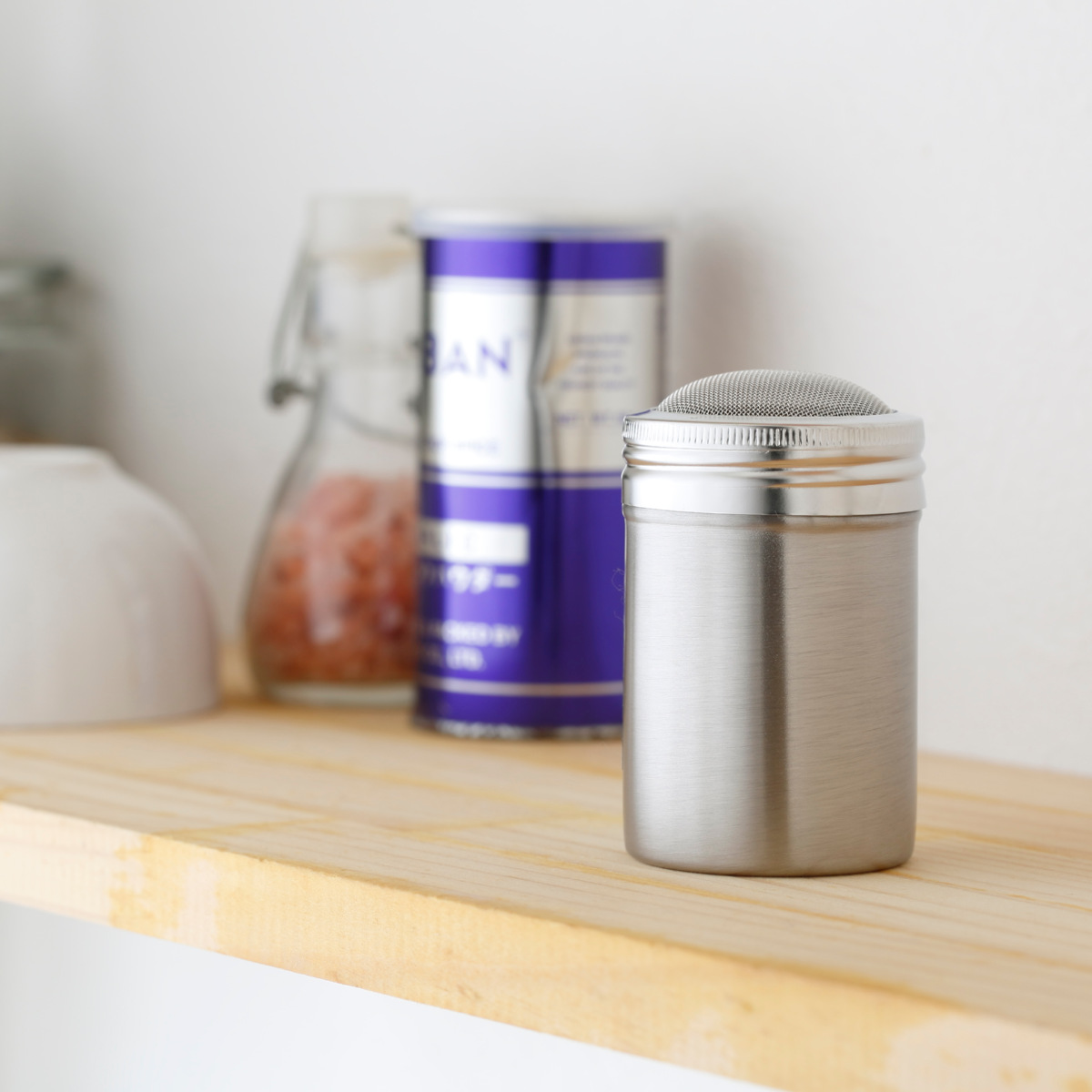キッチンや食卓にすっきりと馴染む、ステンレス製のパウダー缶【細目】です。均一に振りかけやすいメッシュ仕様で、ダマになりにくくまんべんなく振りかけることができ、料理の下ごしらえや仕上げに活躍します。