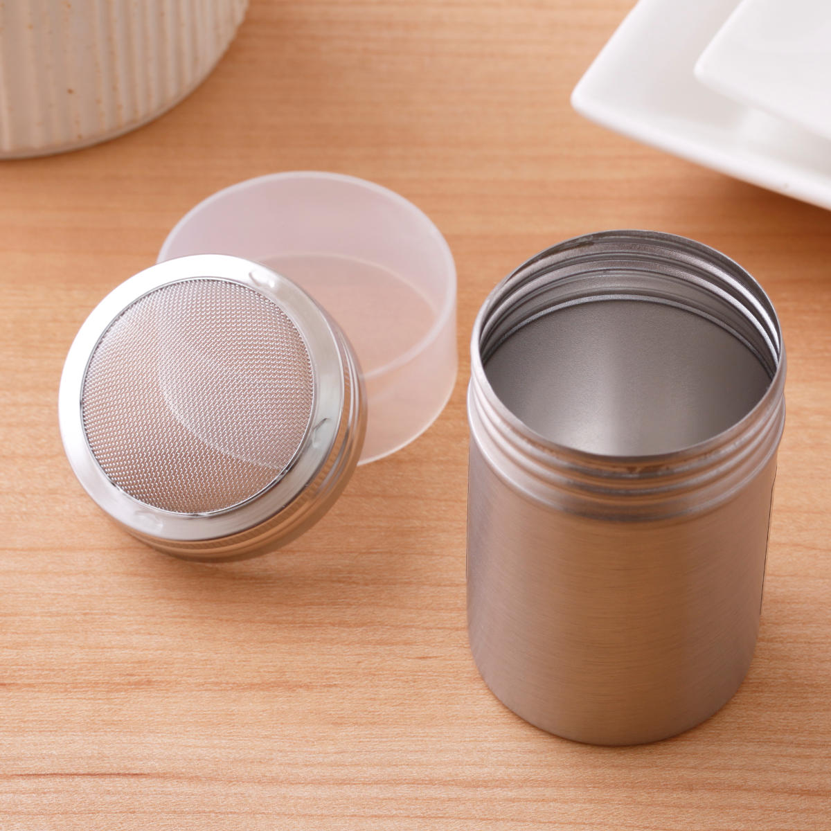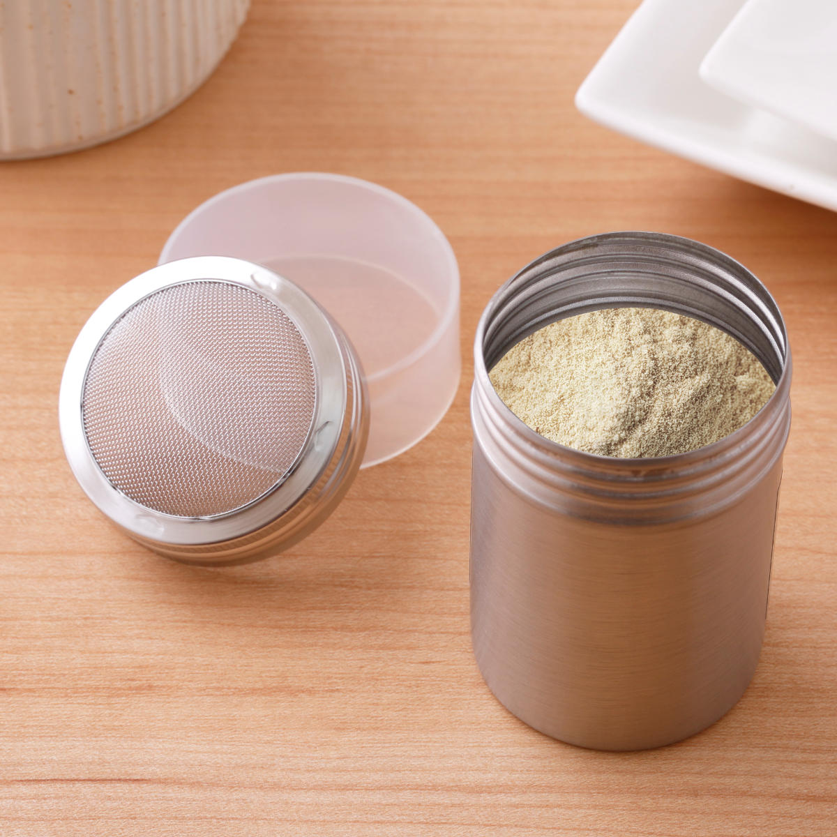 シンプルで使いやすいステンレス製パウダー缶