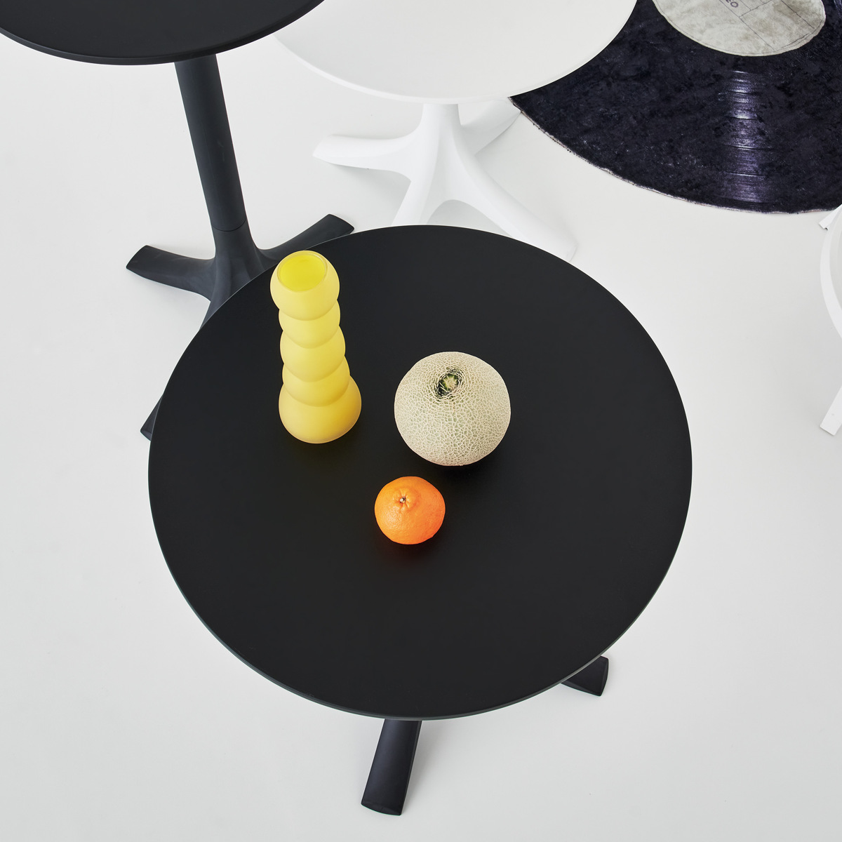 円形の天板はどの方向からでも使いやすく、座る位置を選ばないのが魅力です。
