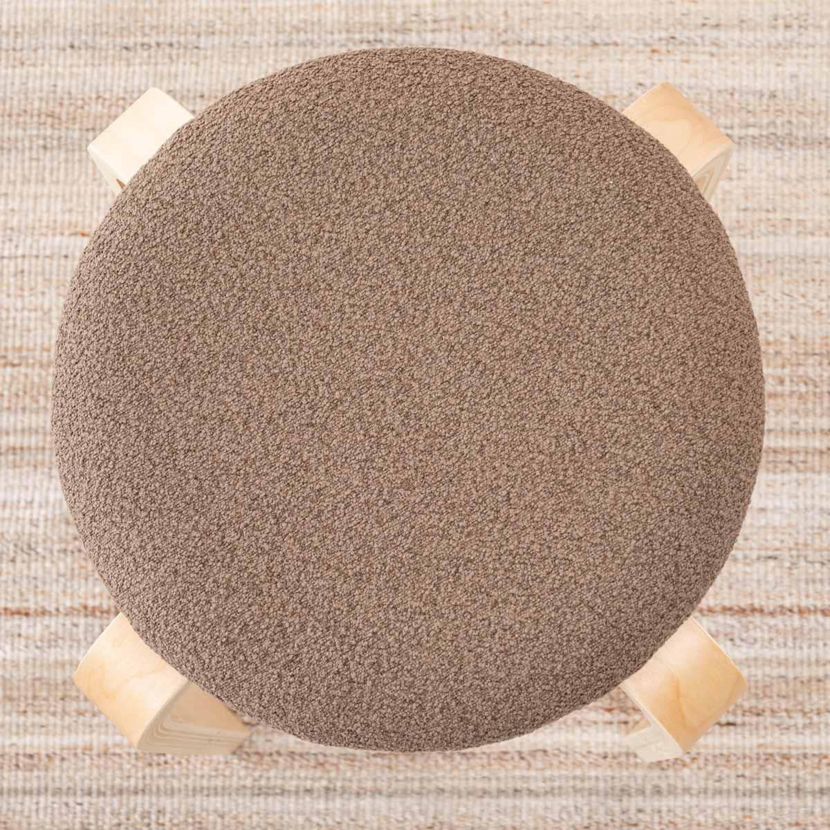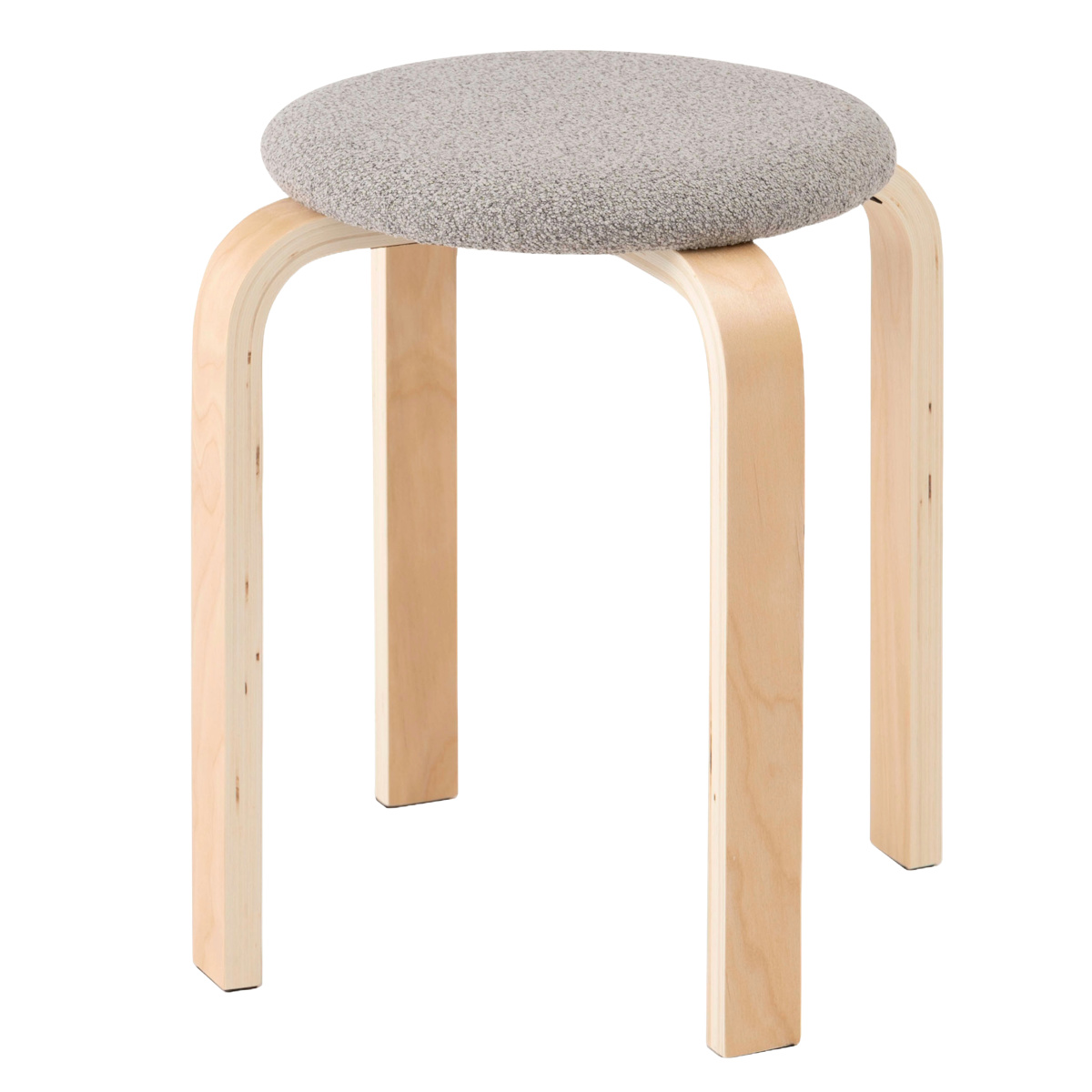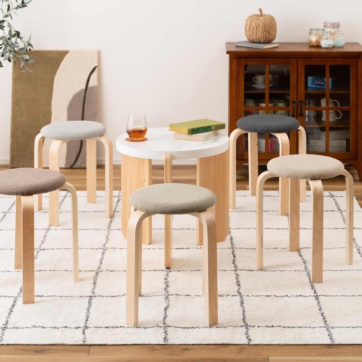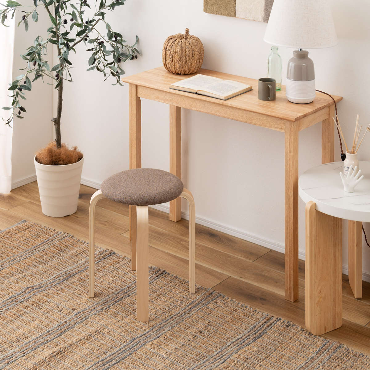 ナチュラルな空間にそっと寄り添う、丸みのあるデザインが魅力のスツールです。天然木のあたたかさと、ニュアンスカラーの落ち着いたファブリック座面が、インテリアにやさしい印象をプラスしてくれます。