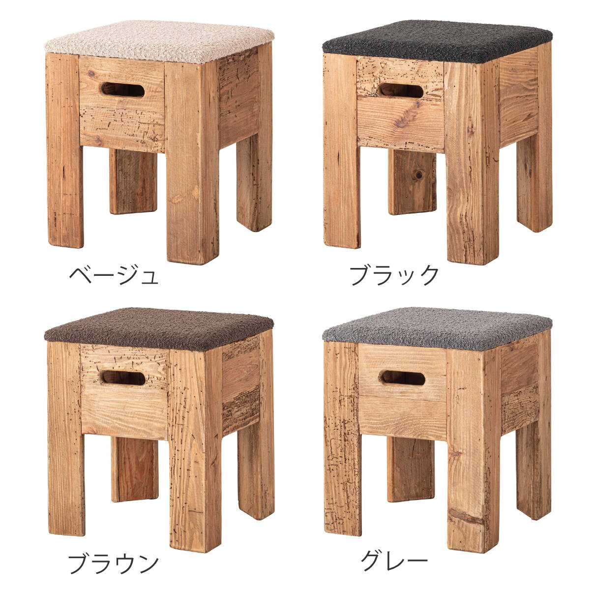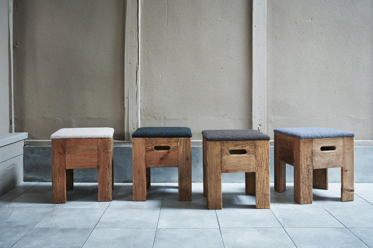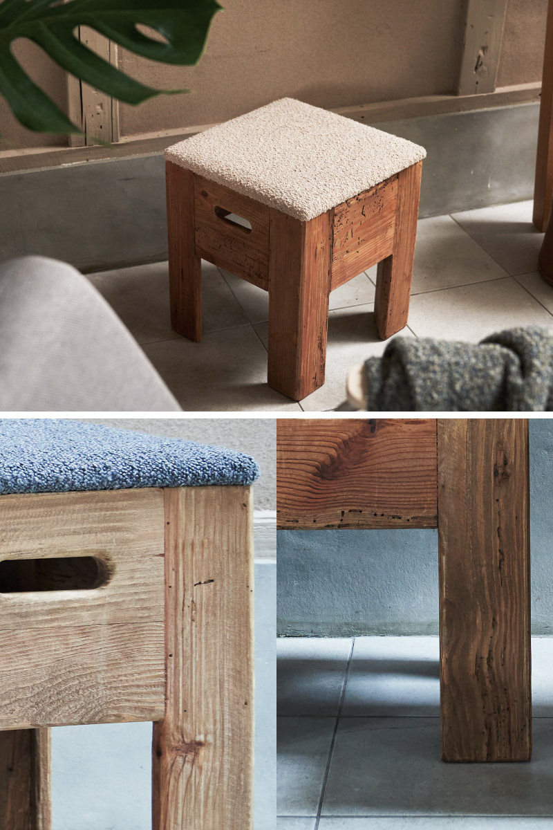 味わい深い風合いを楽しめるパイン古材できたスツール