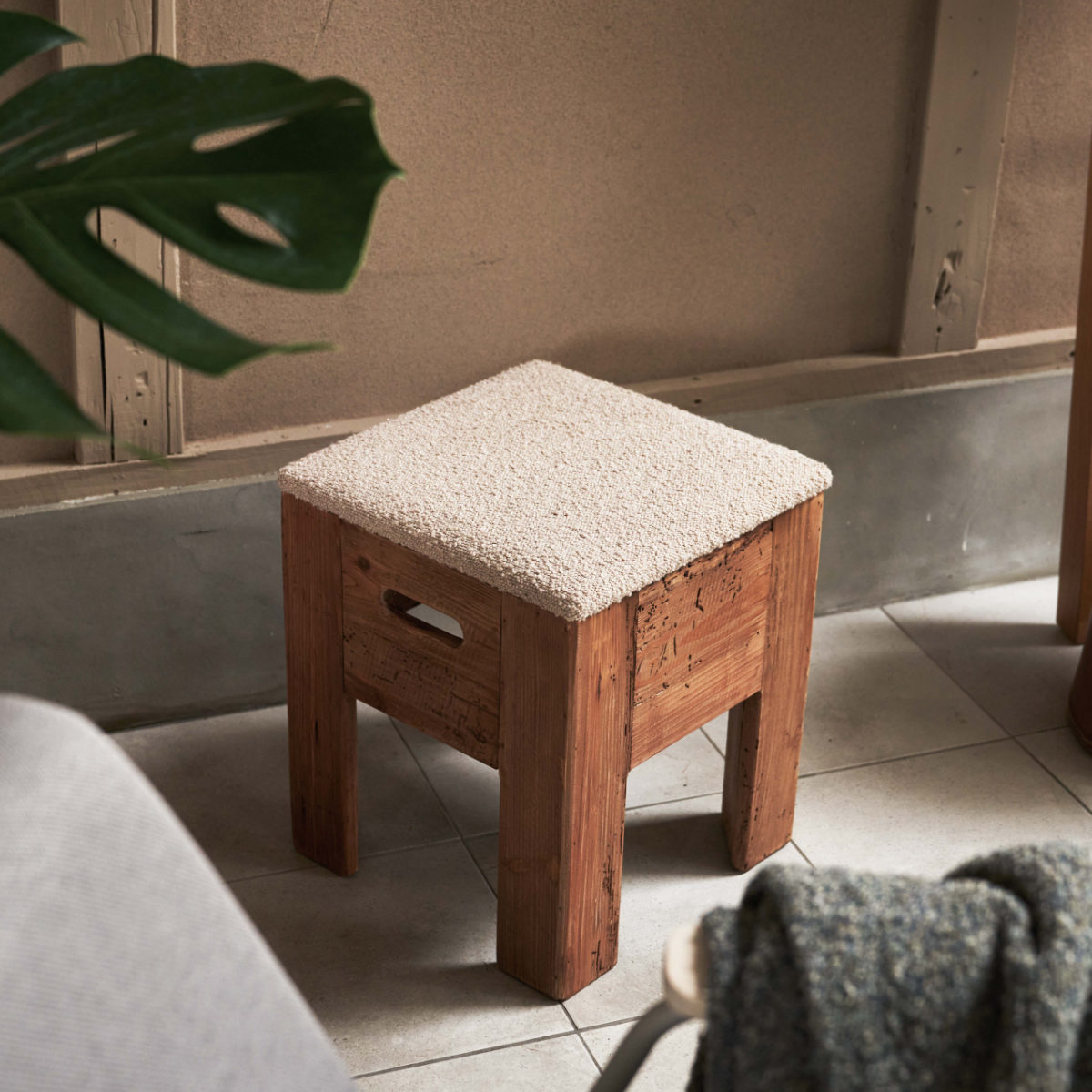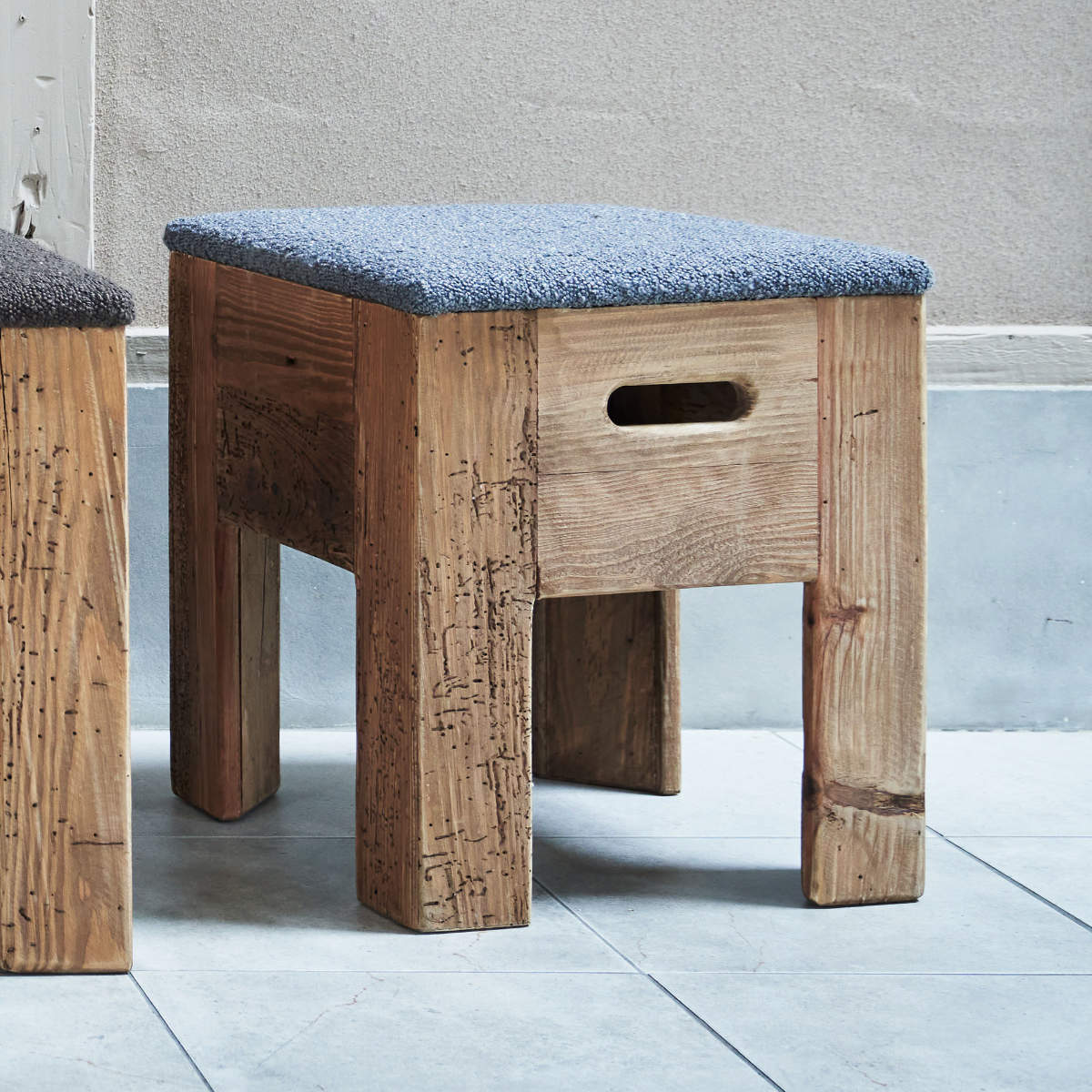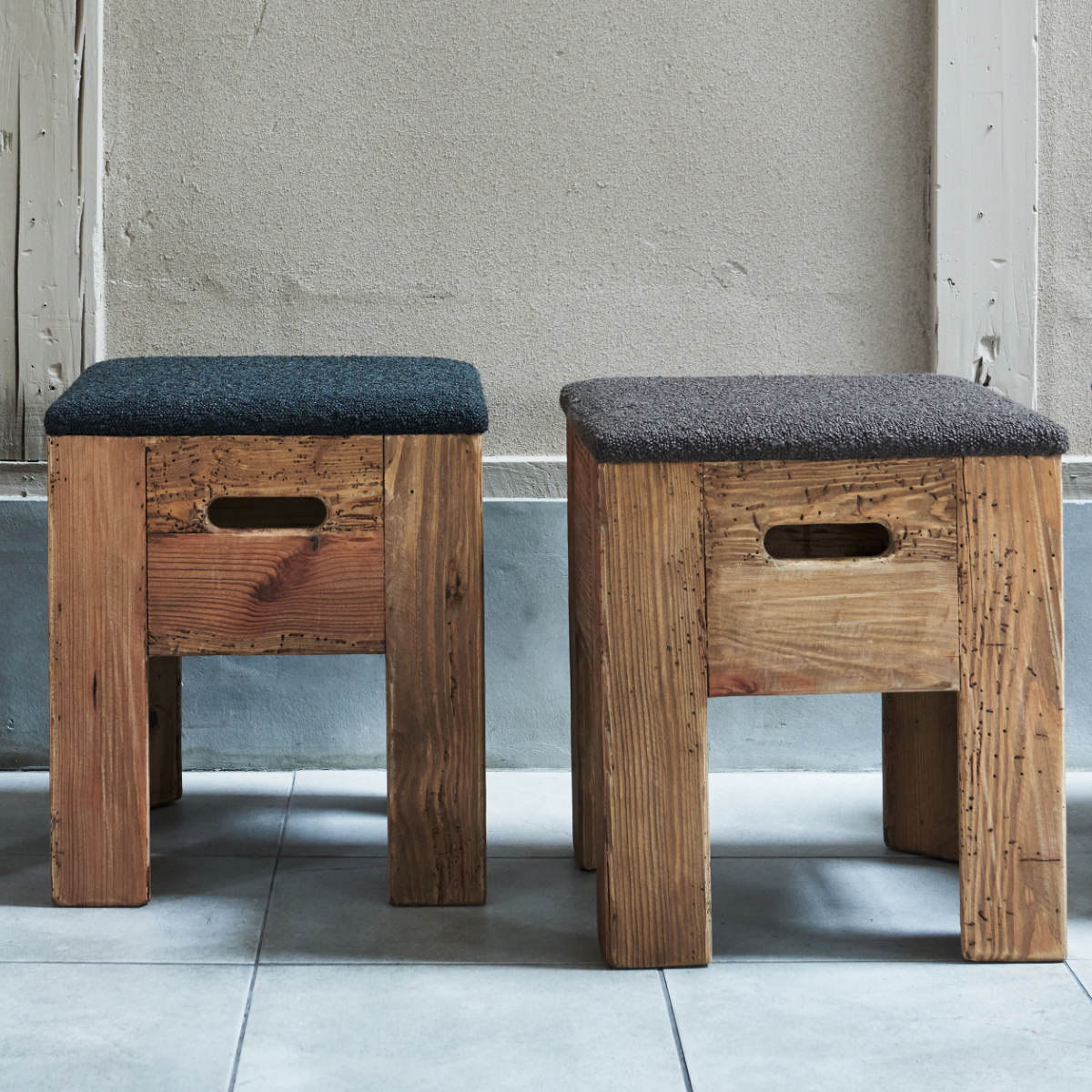 味わい深い風合いを楽しめるパイン古材できたスツール