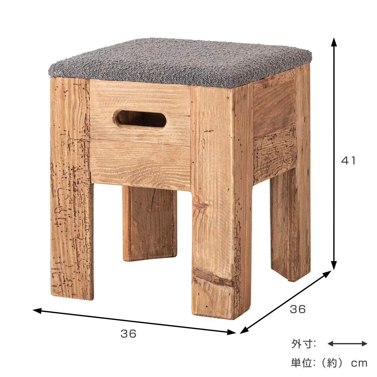 - 天然木(パイン古材)、水性塗装、ポリエステル