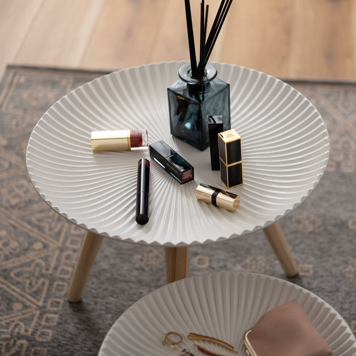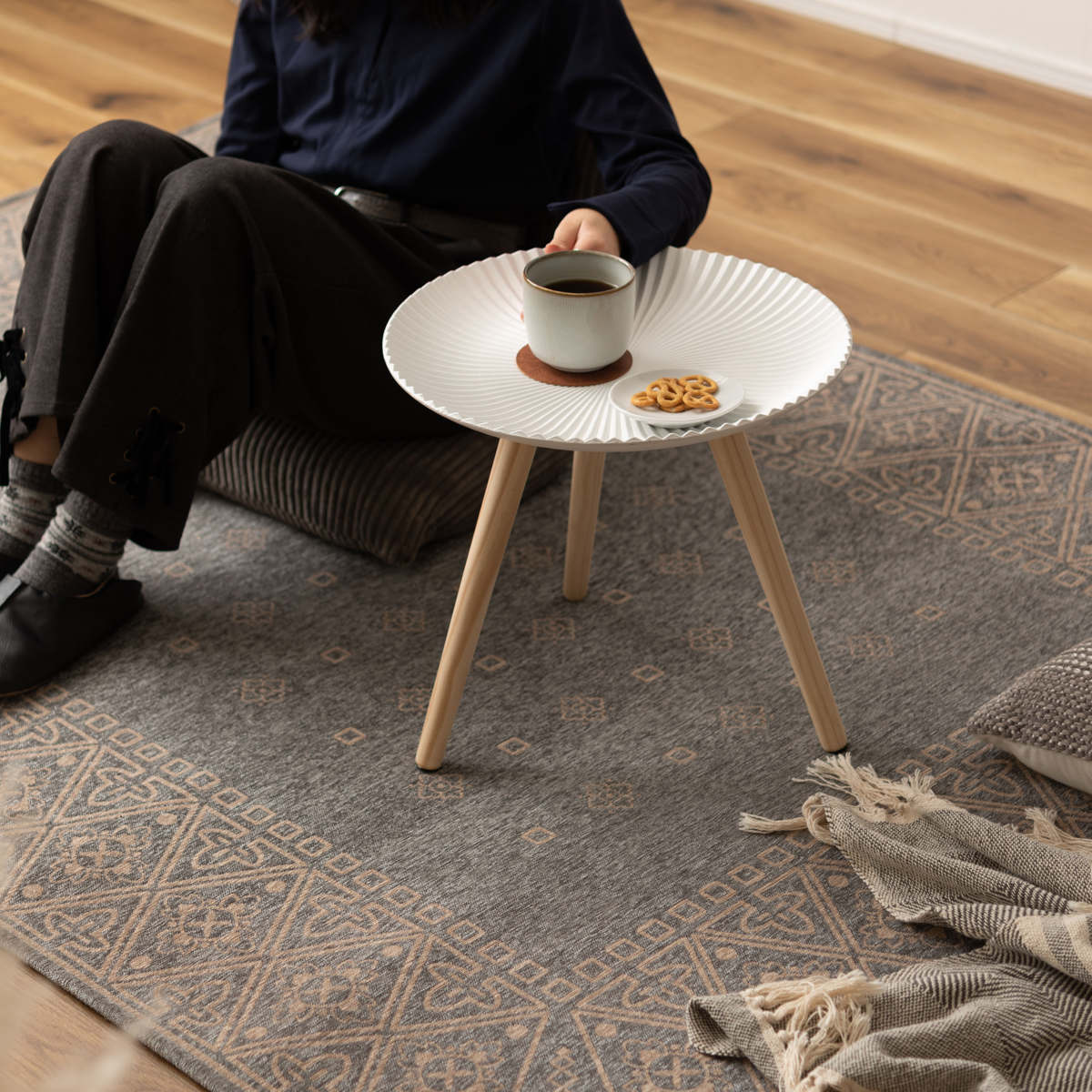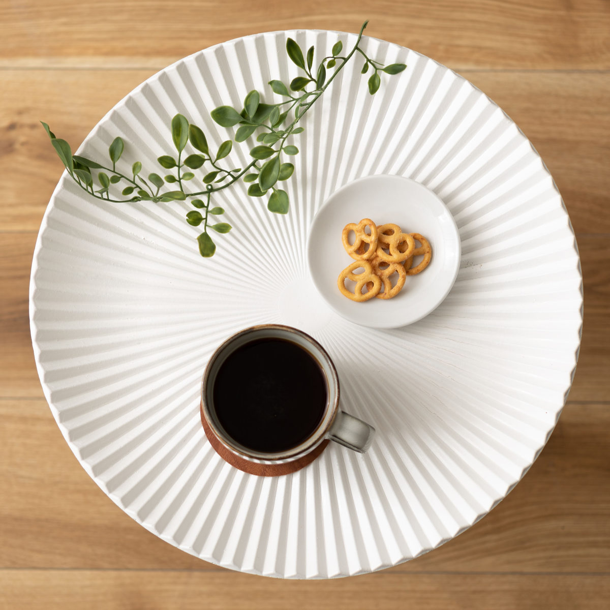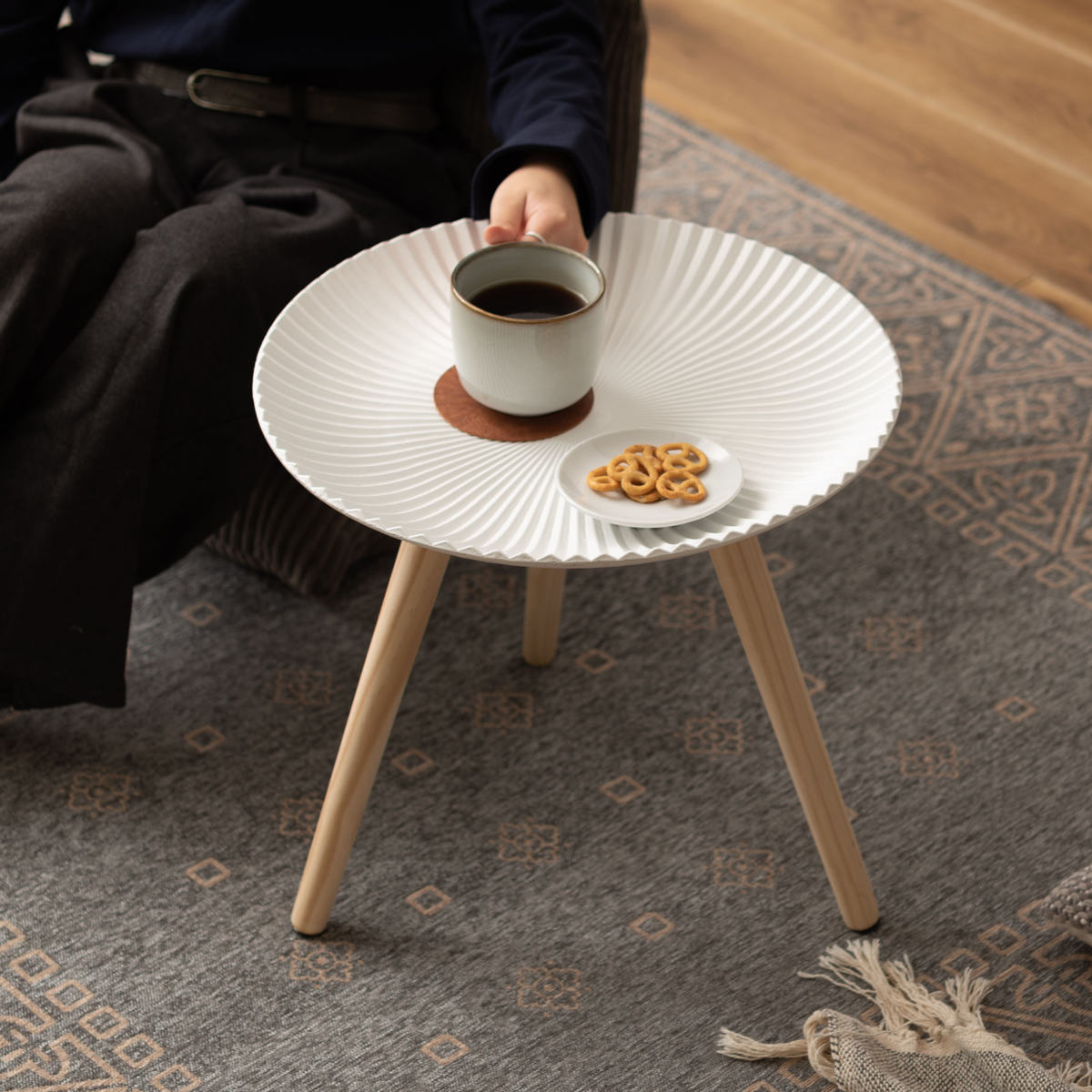 置くだけで絵になる、放射状ラインのトレーテーブル