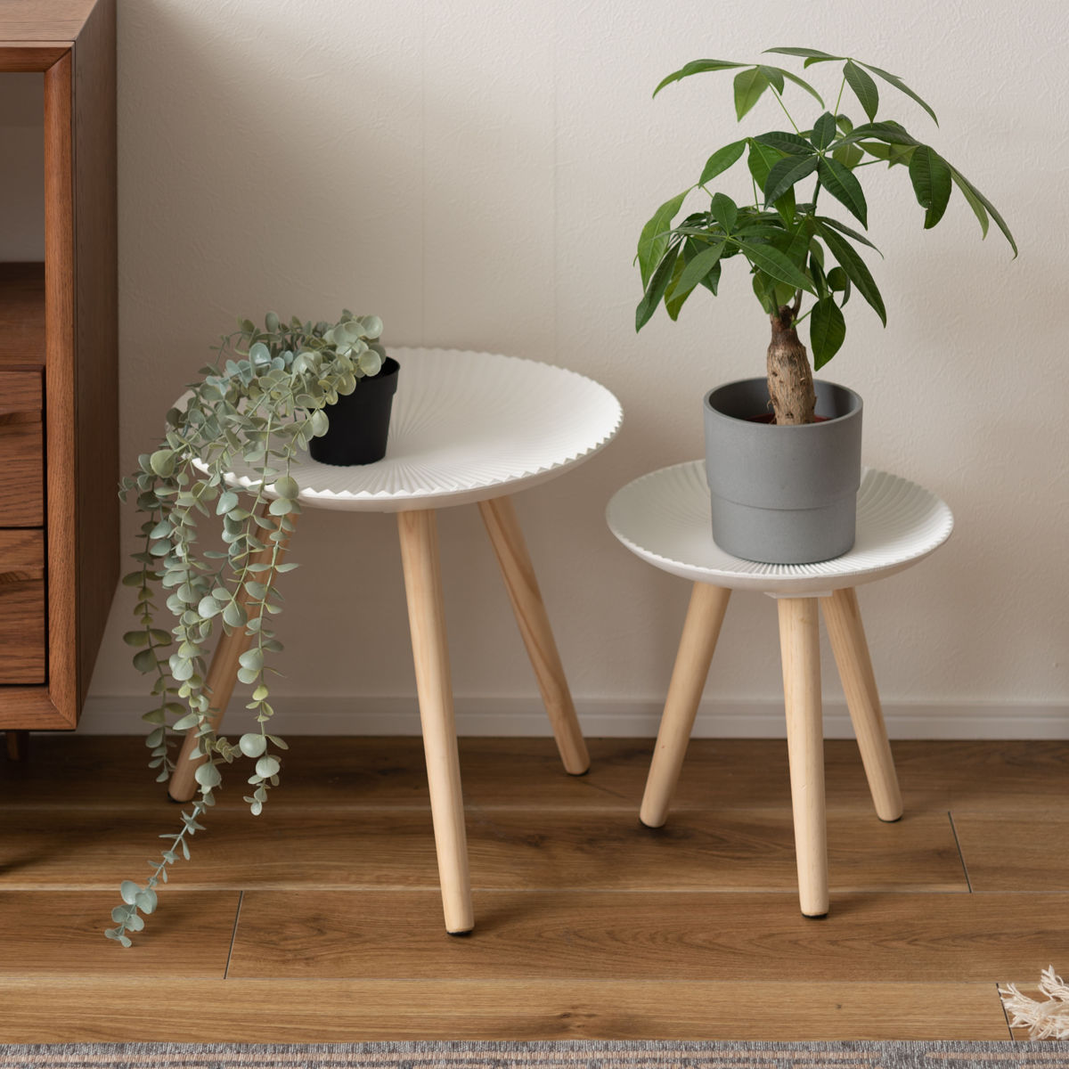 お気に入りの観葉植物やお花を飾る花台としてもおすすめです。空間に高さとリズムが生まれ、インテリアをやさしく引き立てます。