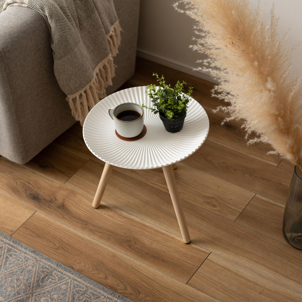 座椅子やソファの横に置けば、くつろぎ時間を快適にサポート。スマホやドリンク、本などを手の届く位置に置けるので、日常使いに便利なサイドテーブルです。