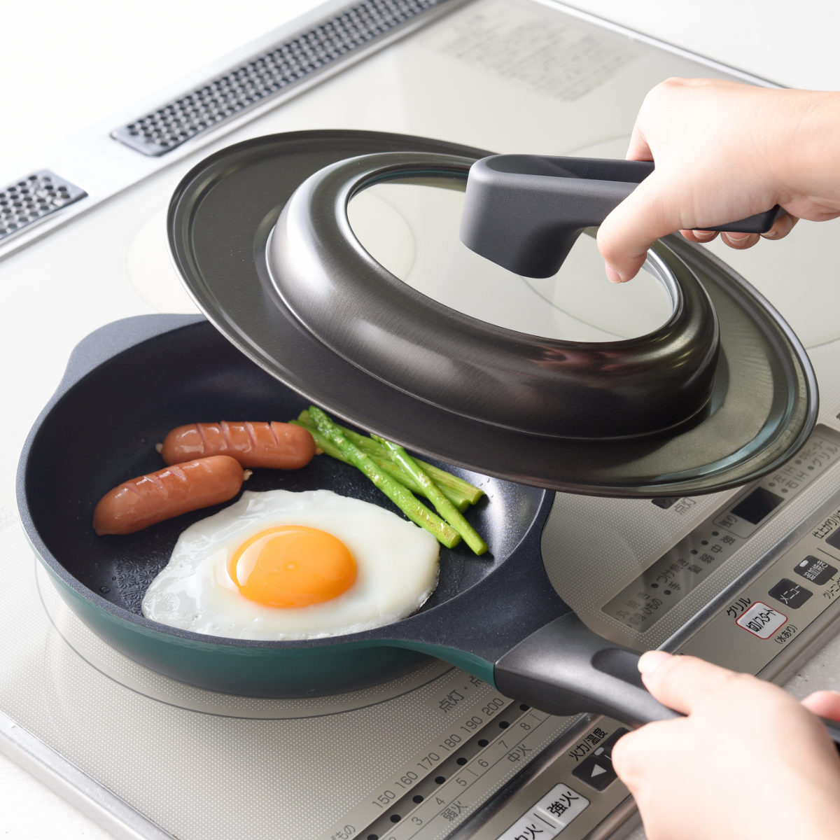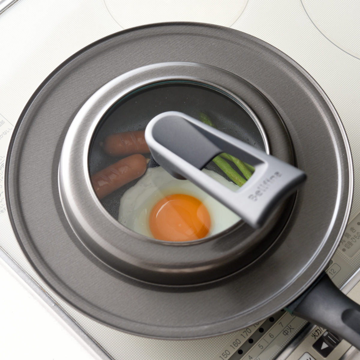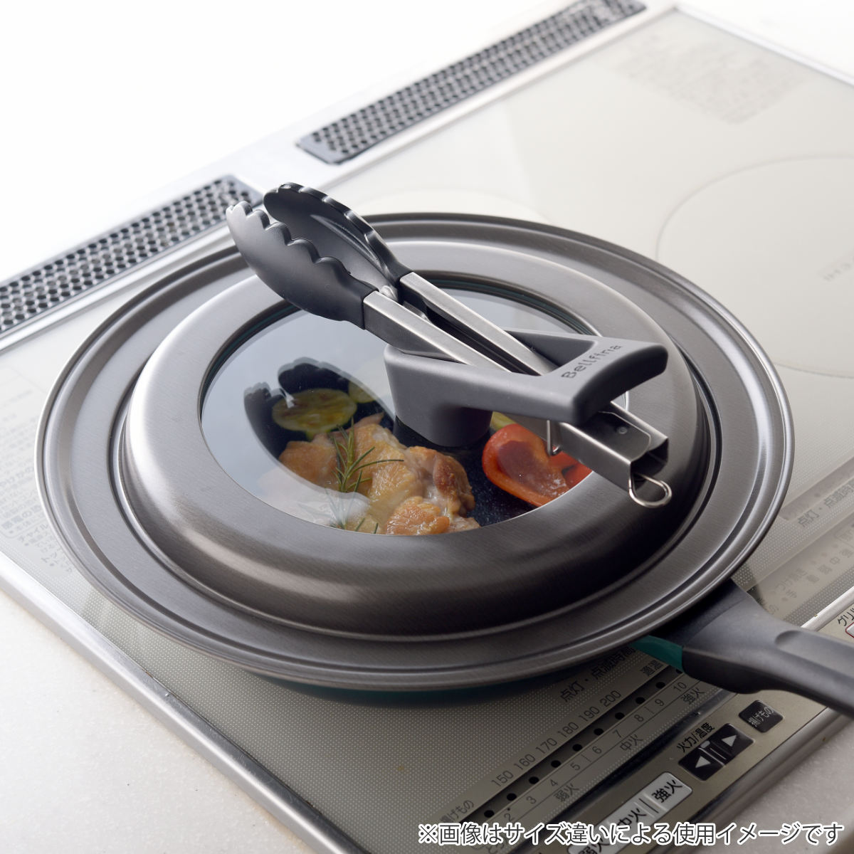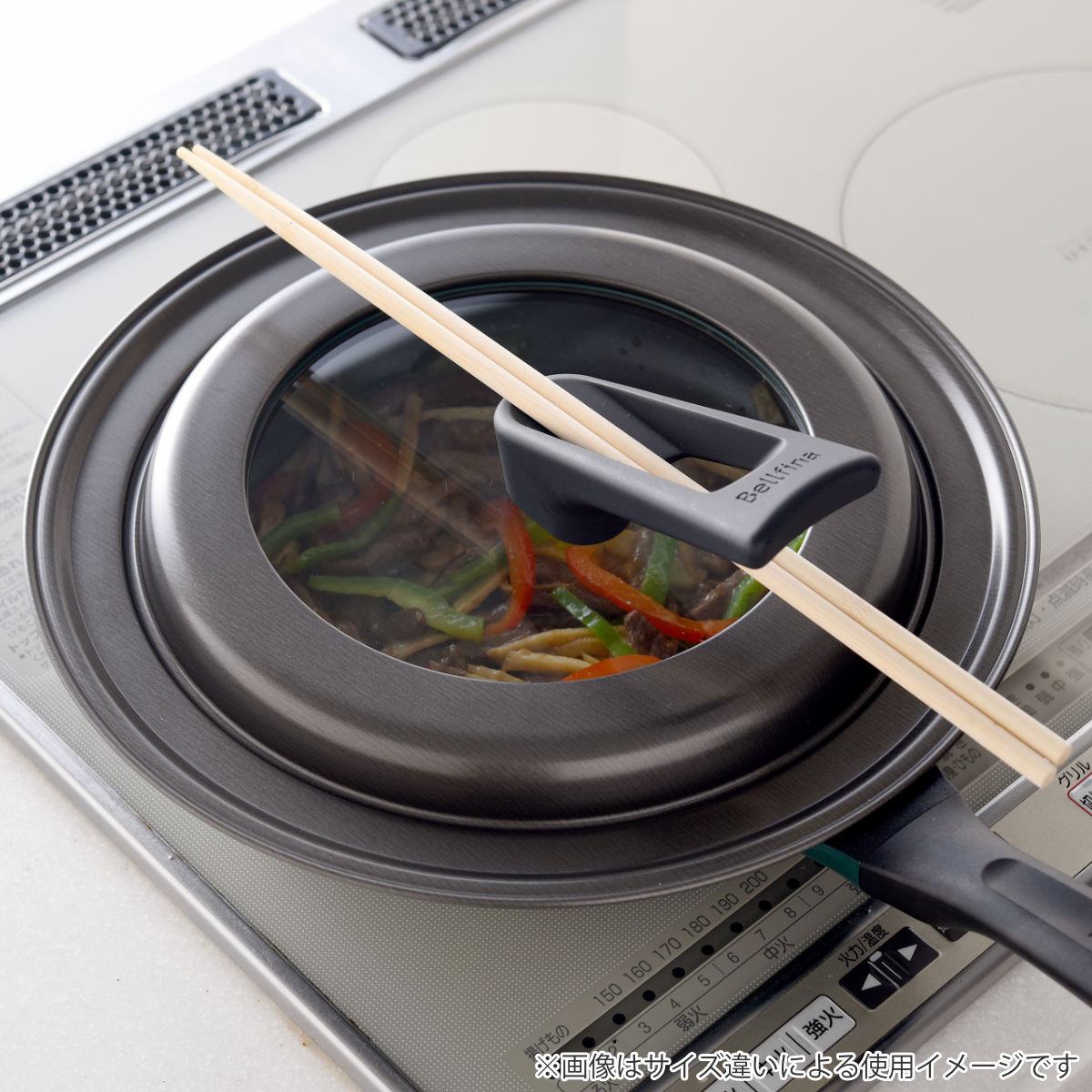 20~26cmまでの鍋やフライパンに幅広く使える蓋です。サイズごとに蓋をそろえる必要がなく、キッチンスペースを有効に使えます。