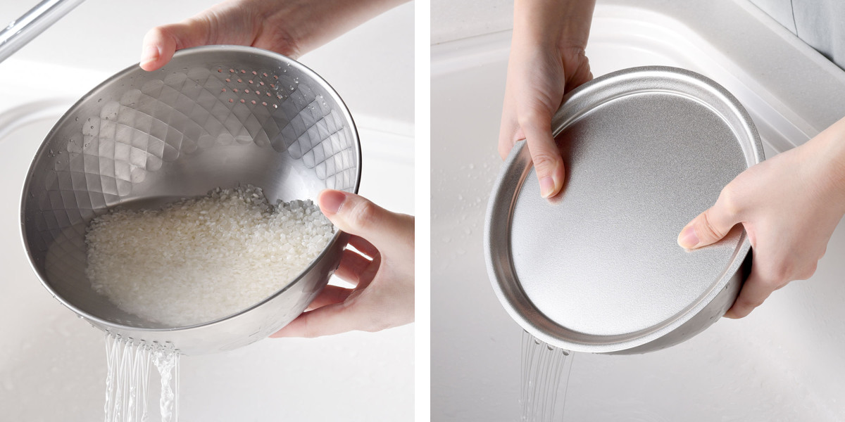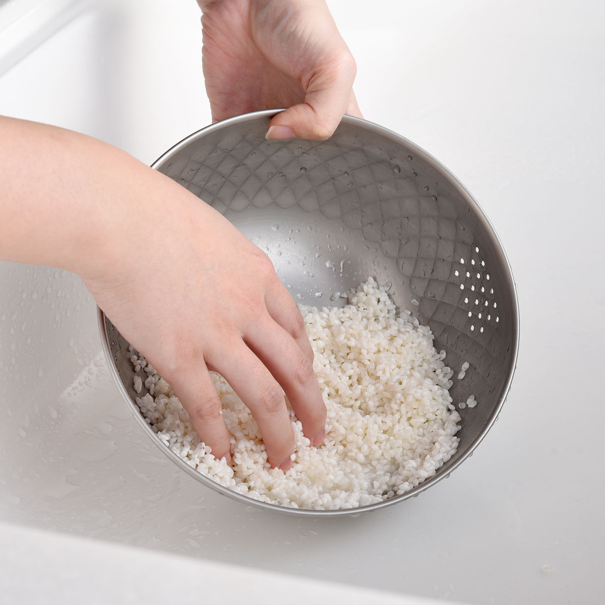 金属加工の町、燕三条で作られたお米を研ぐためのステンレスボウルです。軽い力で素早くお米を研げるので、米がヌカの臭いを吸い込まず、炊き上がりの豊かな香りにつながります。1~2合の米研ぎに適したコンパクトサイズです。