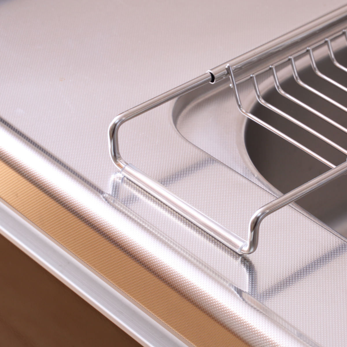 ●スライド式でシンクにピッタリと置ける水切りラックです。