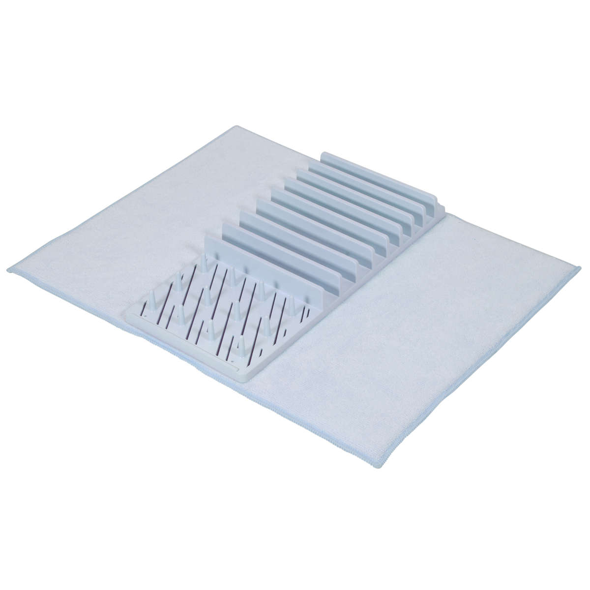 省スペースでも使えるマットは、トレーがなくてもサッと広げて水切りできます。洗濯ネットに入れて洗えるので、いつでも清潔に保てて衛生的です。