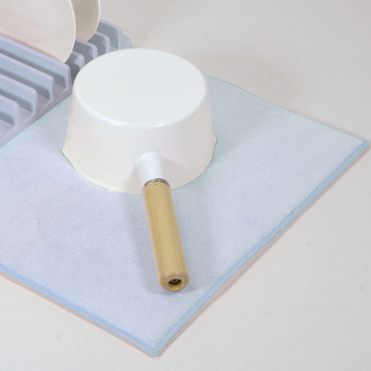 ●お皿やグラスはトレーで立てて、鍋やフライパンはマットが水分を吸収して快適に水切りできます。