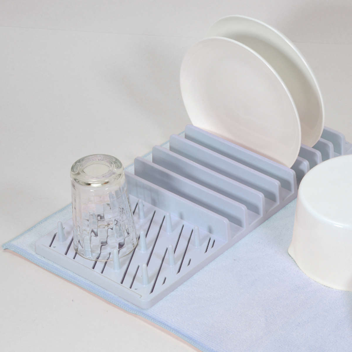 水切りトレーはお皿やグラスを立ててしっかり水切りできます。マットは鍋やフライパンなどの水切りに便利で、食器から落ちる水分を吸収し、シンクまわりを濡らさず快適に使えます。