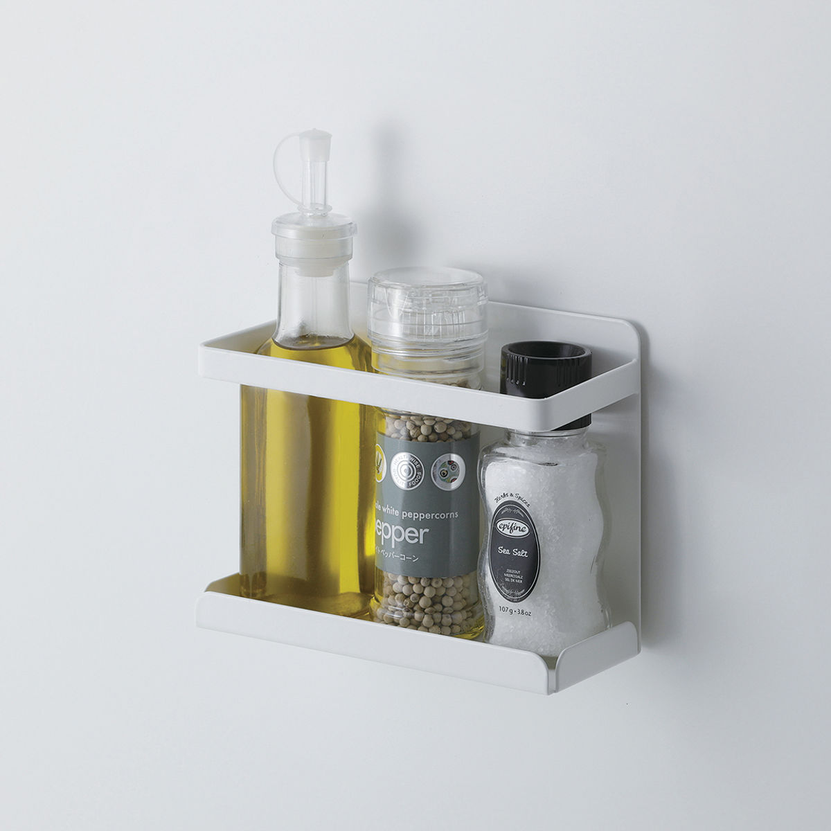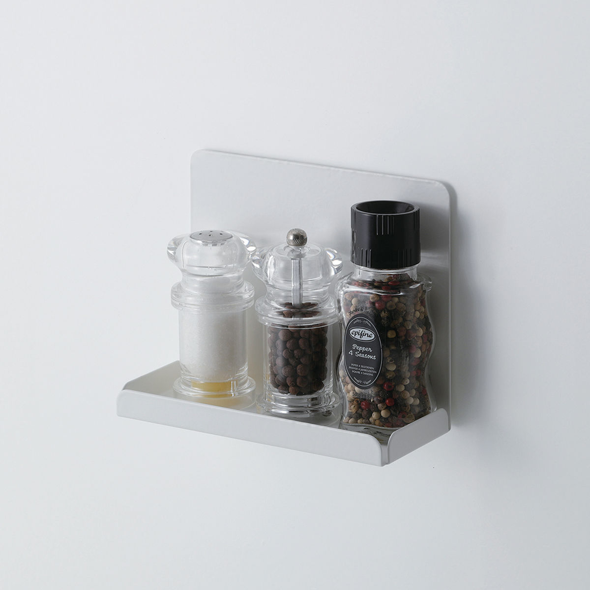 マグネットで簡単に取り付けできる「マグネフィット」シリーズのスパイスラックです。同シリーズのキッチンパネルや冷蔵庫などに貼りつければ、スパイスを浮かせて収納できます。スッキリ収納できるノーマルタイプと、高さのあるボトルタイプのスパイスも安心して収納できるガード付きの2種類からお選びいただけます。
