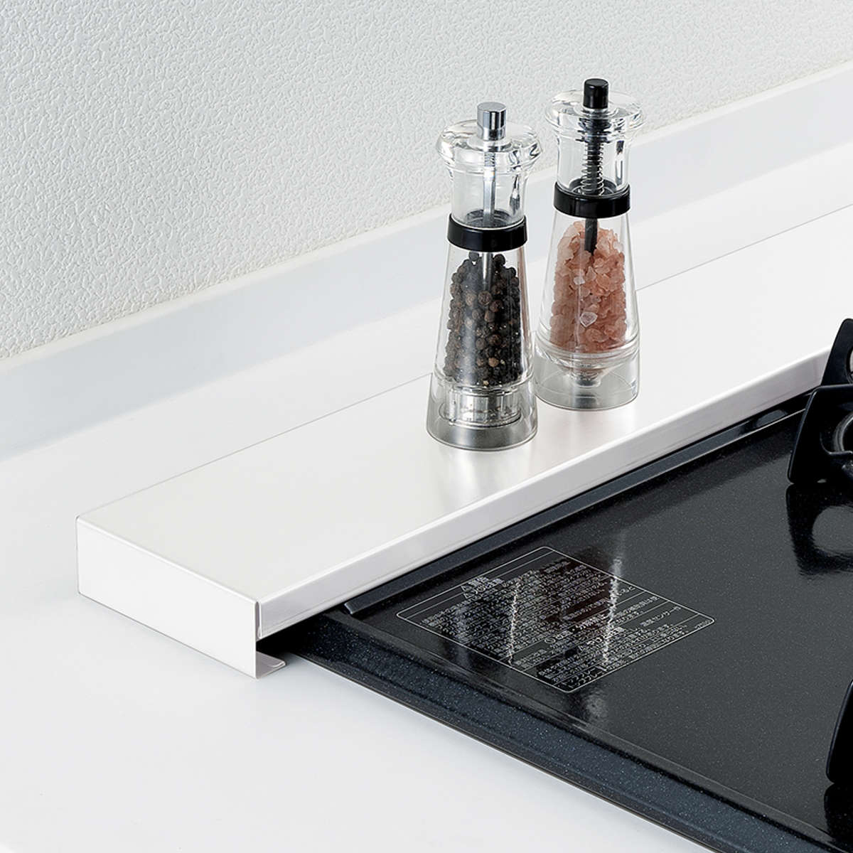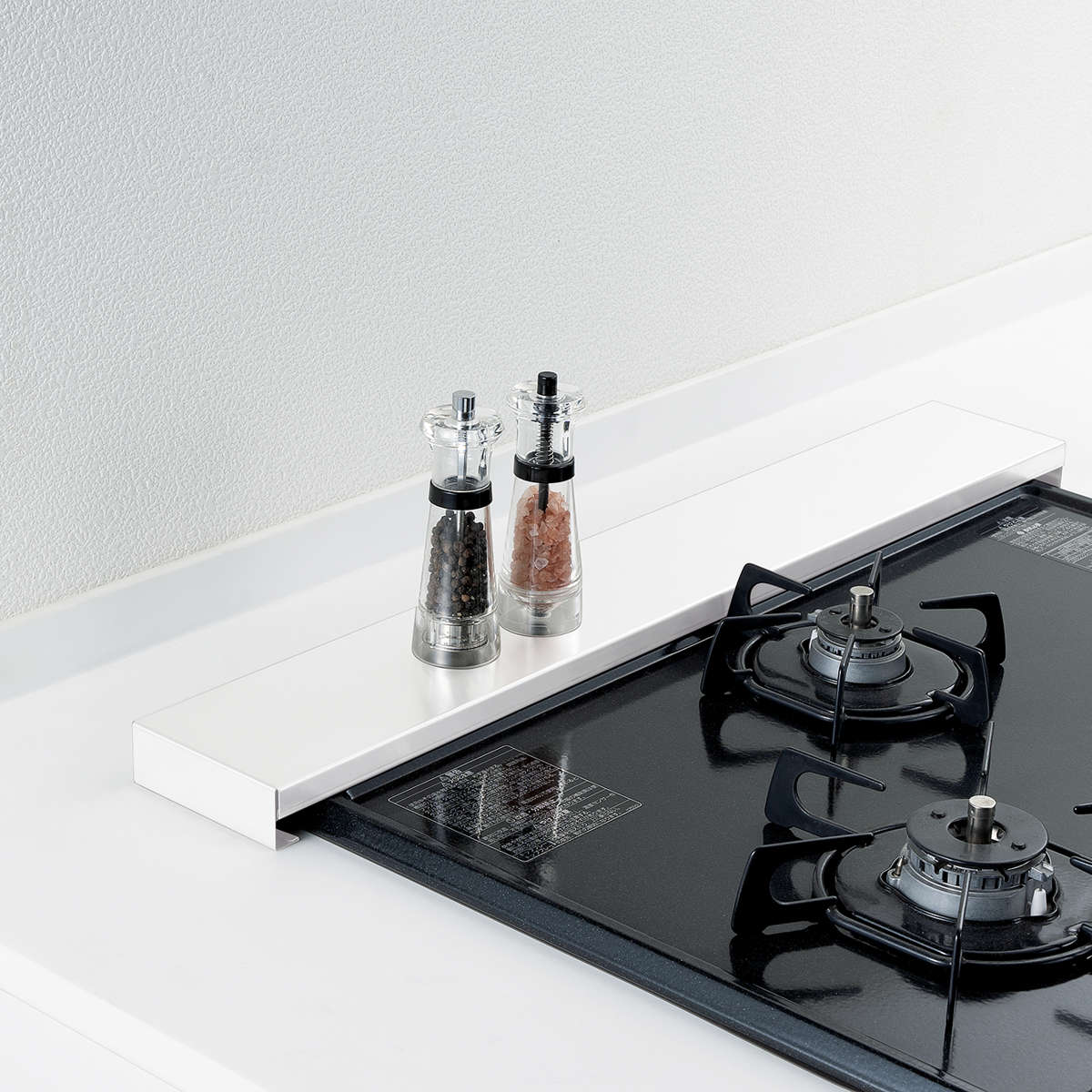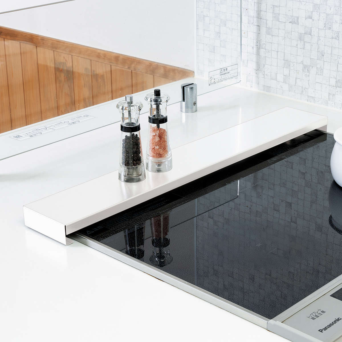 鍋や調味料の一時置きにもできるホワイトカラーの排気口カバー