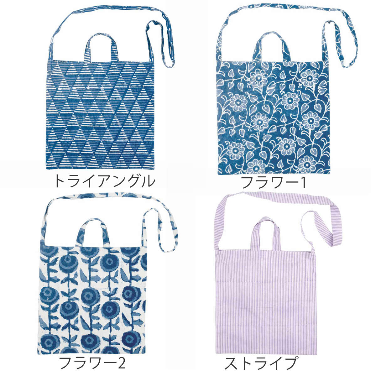 | 備考 | ※トライアングル、フラワー1、フラワー2は藍染加工の商品です。天然染料のため、色落ちや経年変化が生じます。あらかじめご了承ください。 |