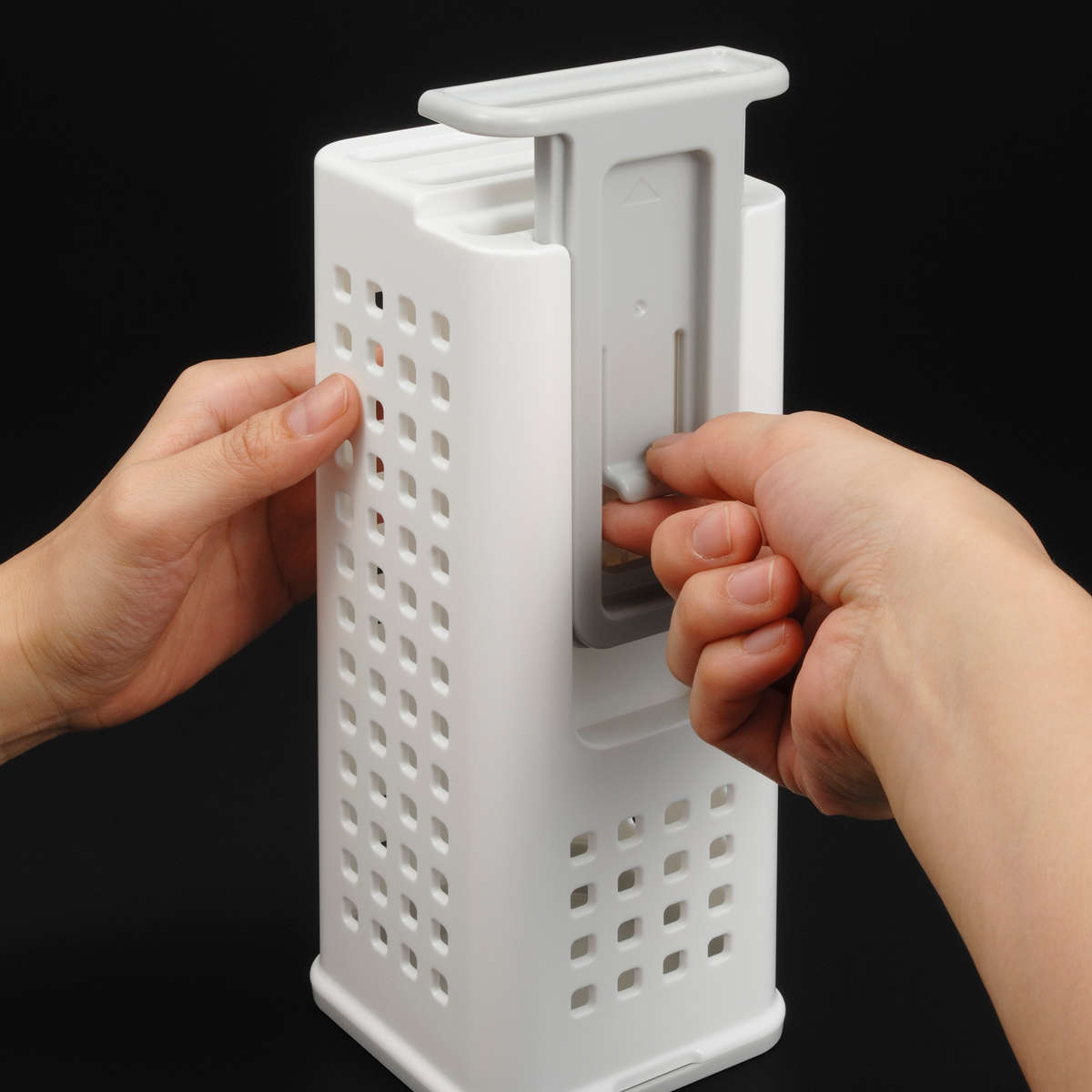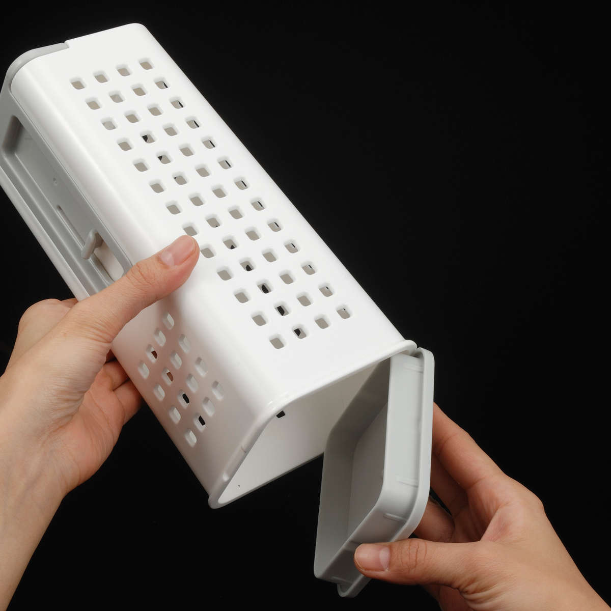 底フタは切り欠き付きで開けやすく、お手入れも簡単です。パーツはすべて取り外せるので衛生的です。