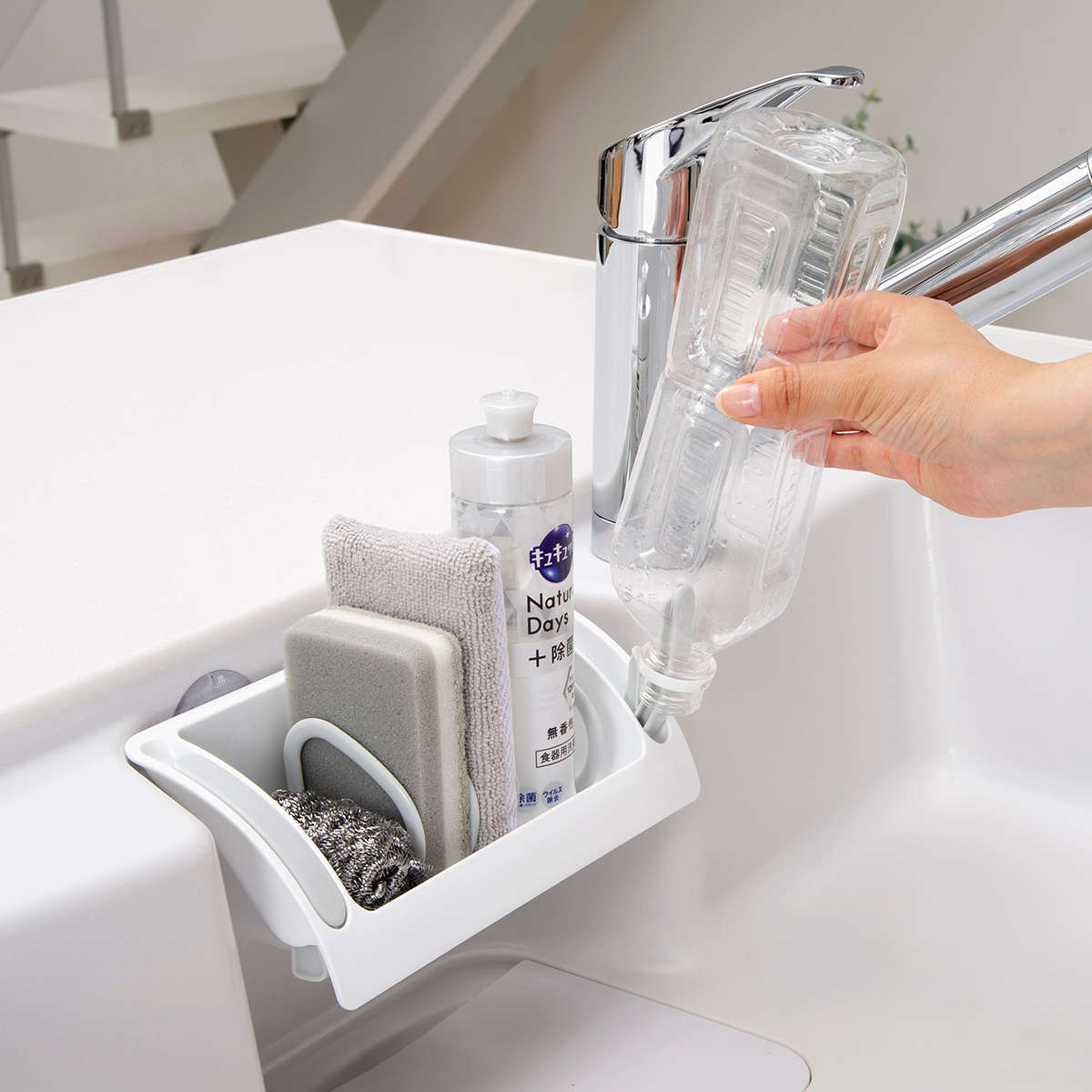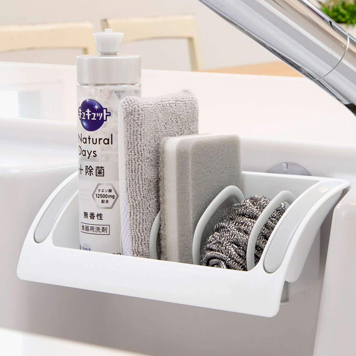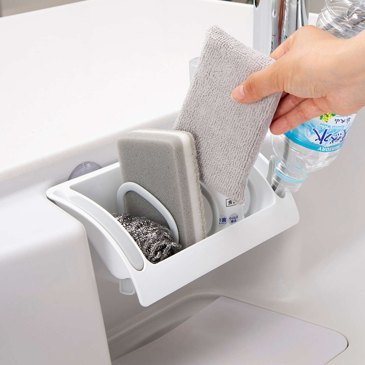 ●スポンジも洗剤もぴったり収納できる吸盤タイプのスポンジラックです。