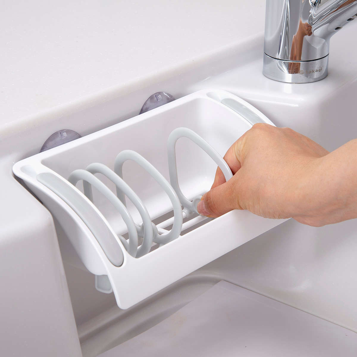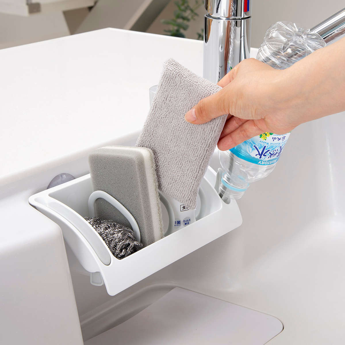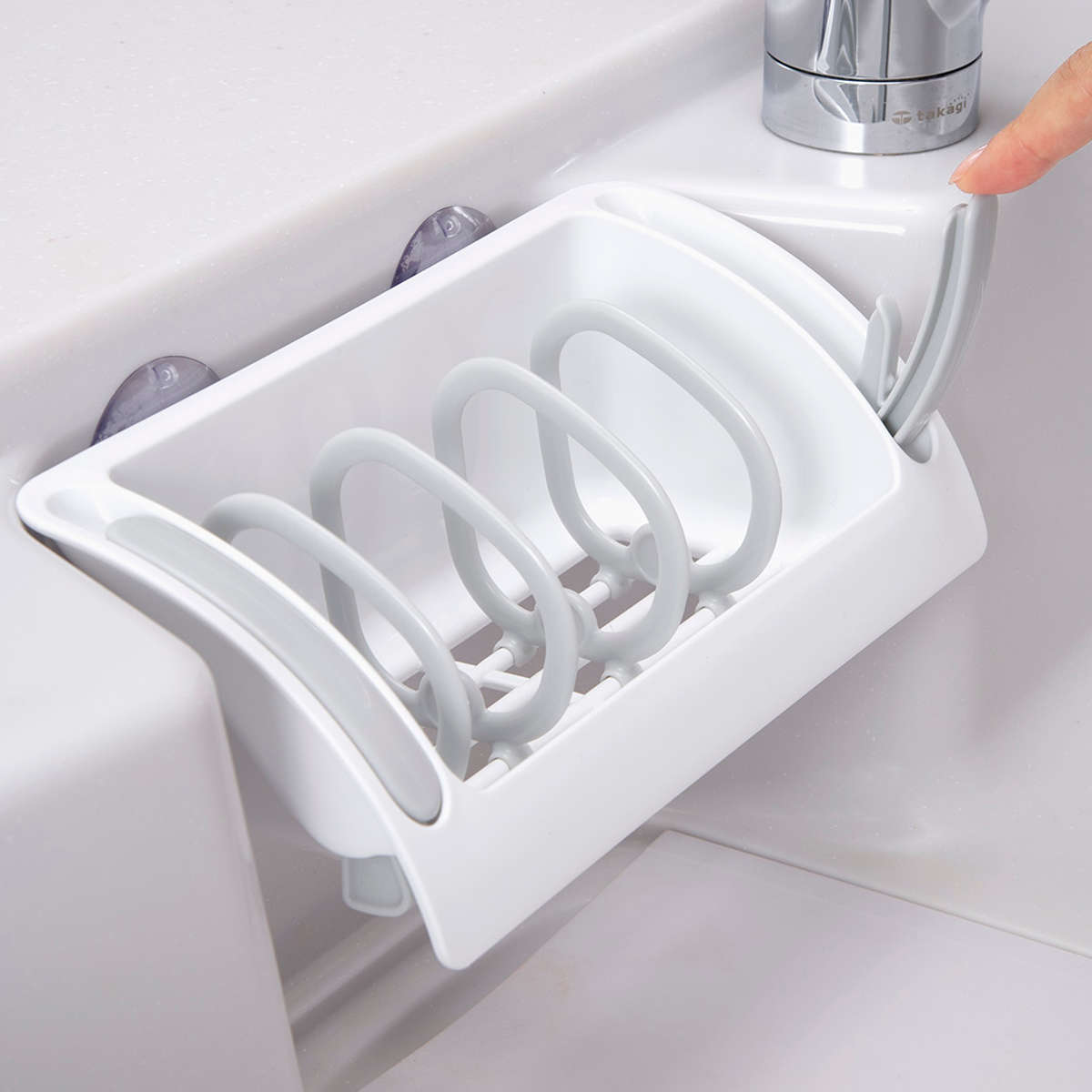 ●スポンジも洗剤もぴったり収納できる吸盤タイプのスポンジラックです。