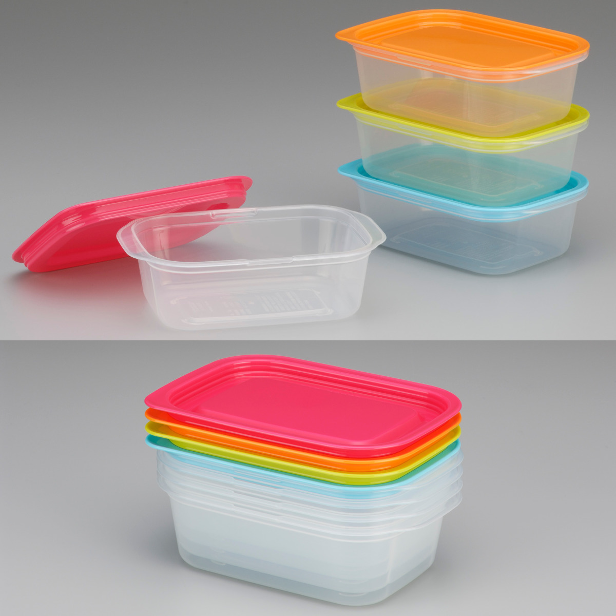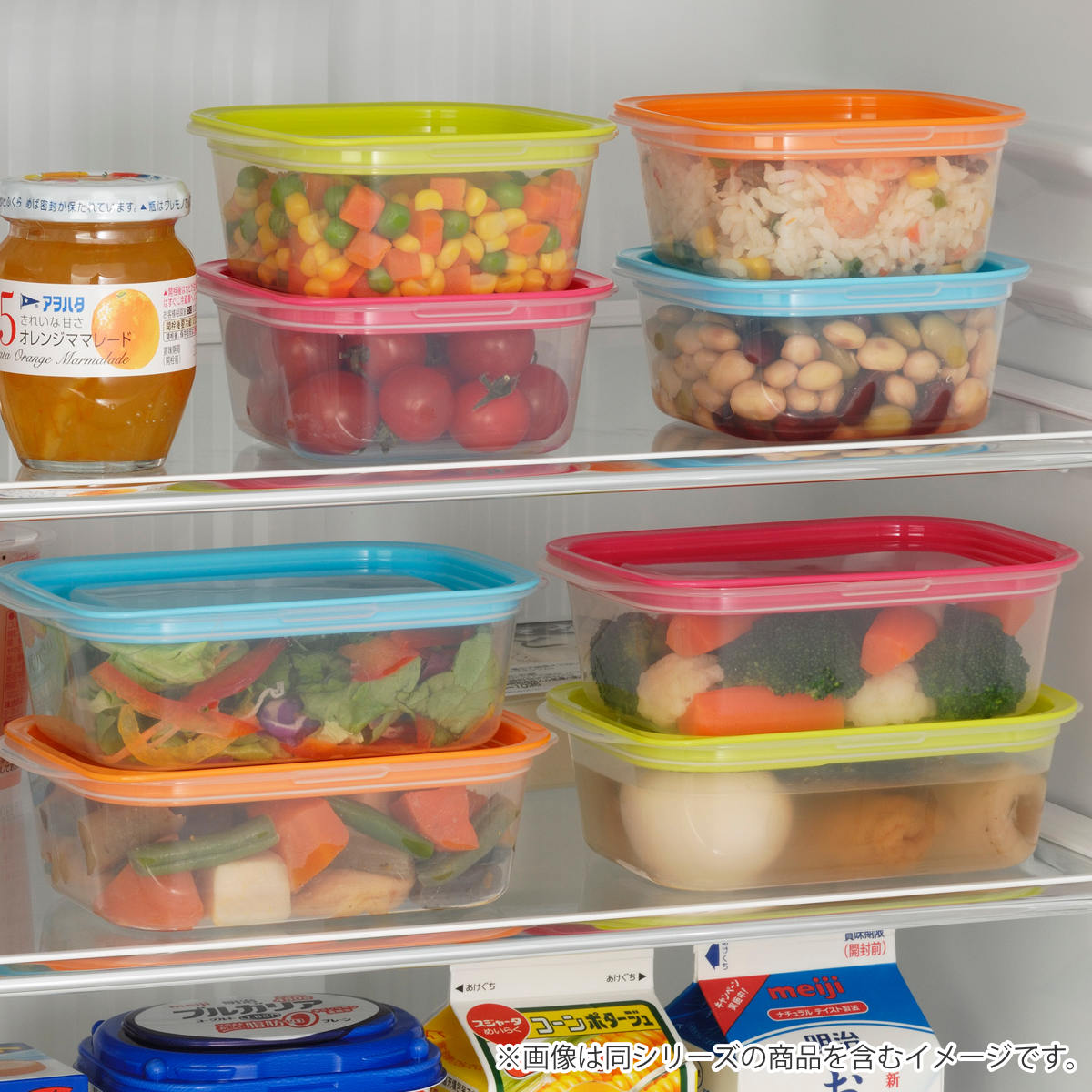 スタッキングできるので冷蔵庫内もすっきり整理できます。透明な容器で中身が一目で分かり、フタを開けて確認する手間もありません。