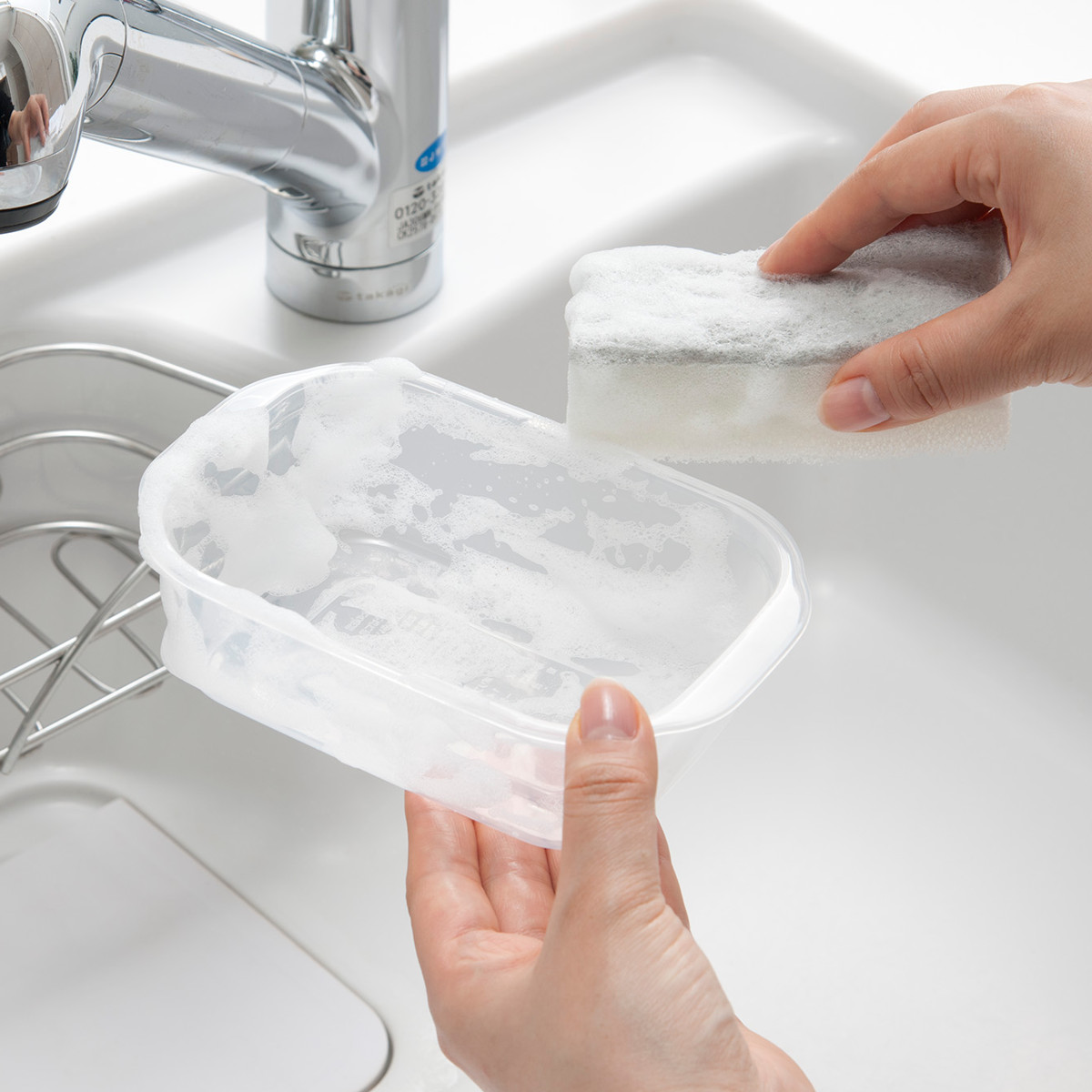 フタと本体のフチがフラット形状なので、凹凸に汚れがたまりにくく、スポンジだけで簡単に洗えます。清潔に保ちやすいのも嬉しいポイントです。
