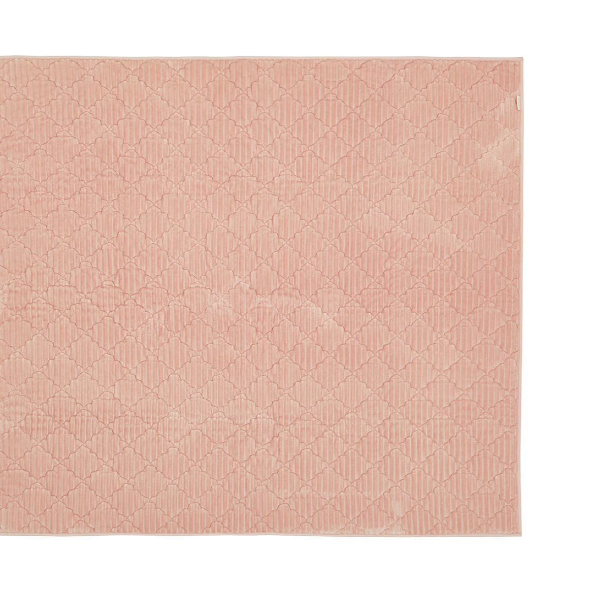 ストライプフランネルに、モロッカン柄のキルティングを施した生地です。ポコポコと立体感のあるデザインと、かわいいカラーが魅力のお洒落なラグです。洗濯機で洗える仕様なのでお手入れも簡単です。