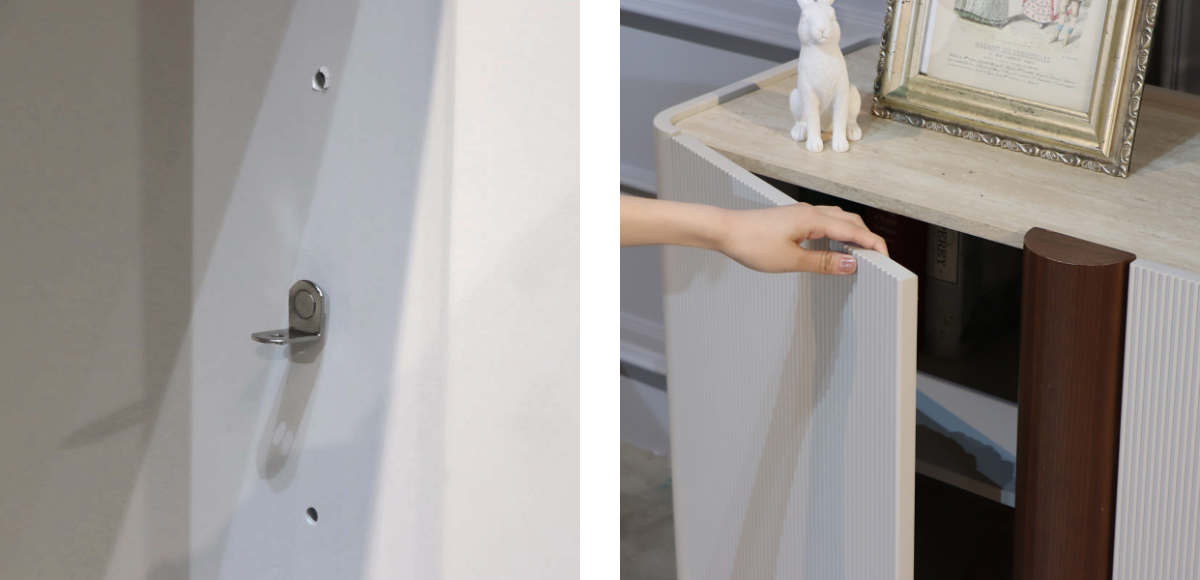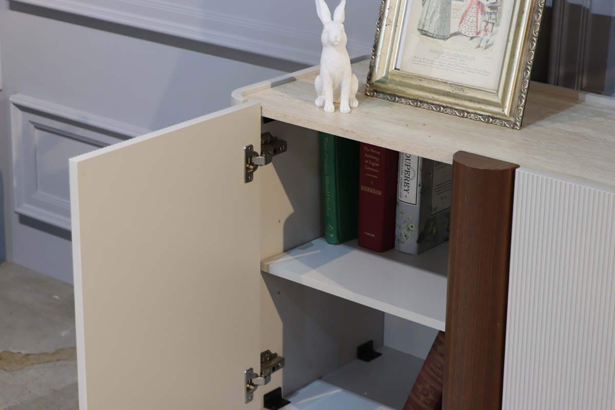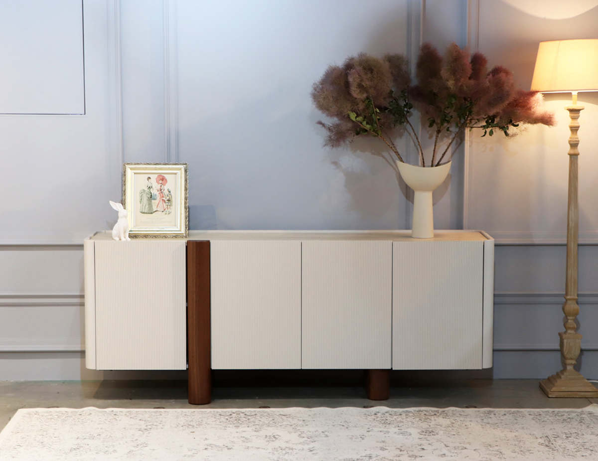 丸みを帯びたエッジがアート作品のように美しいサイドボードです。リビングや玄関、寝室などの様々なシーンで、お気に入りの小物を飾りながら扉内にはたっぷりと収納できます。