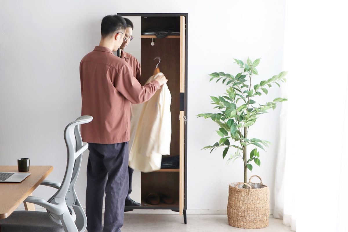 ブラック×ナチュラルのカラーリングがスタイリッシュなロッカーです。日本の家具職人が選び抜いた安全な素材を使用し、職人が細部までこだわって作り上げた日本製です。
