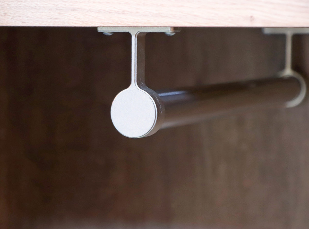 スーツやコートを掛けられるハンガーバー付き。洋服をシワにならないように掛けて収納することができます。