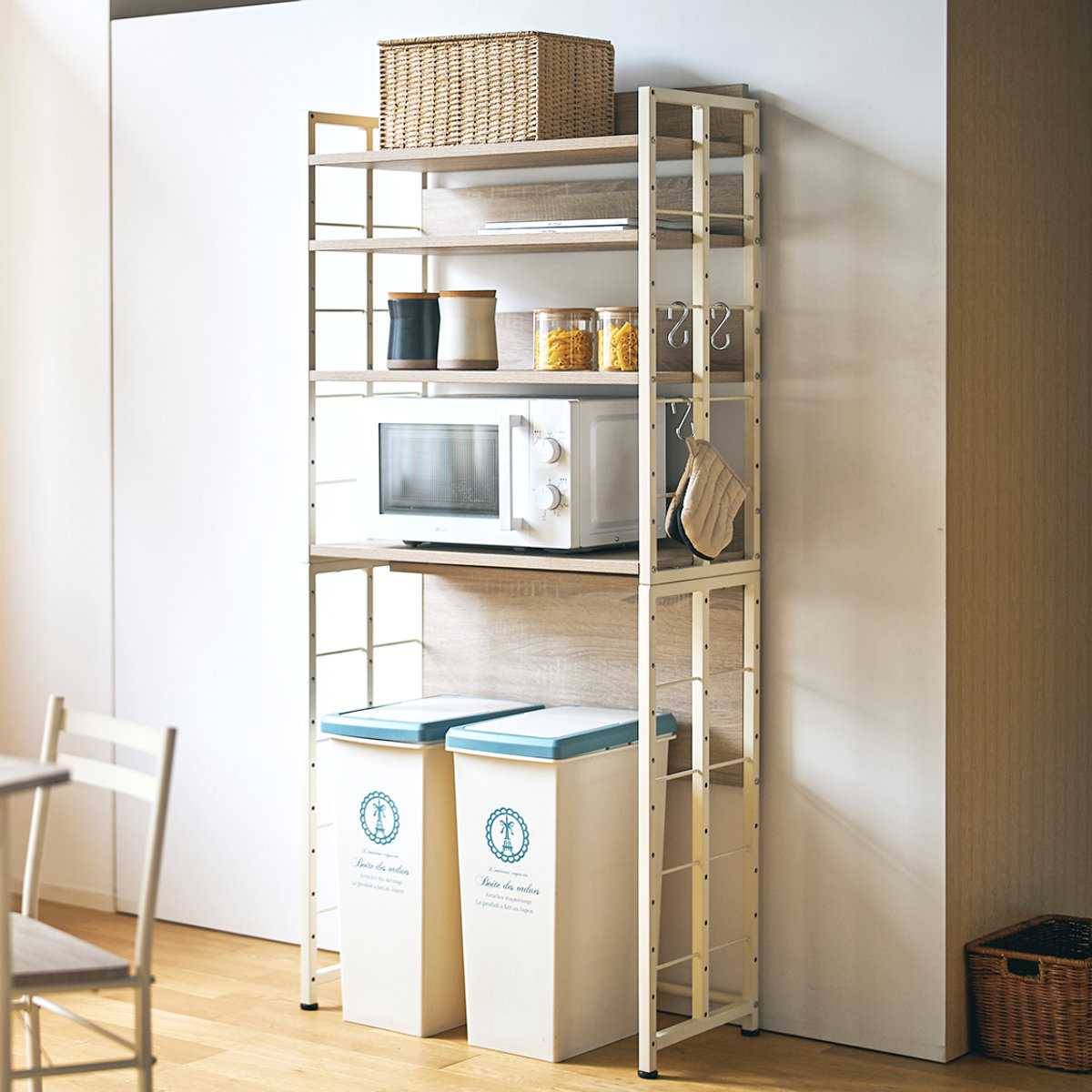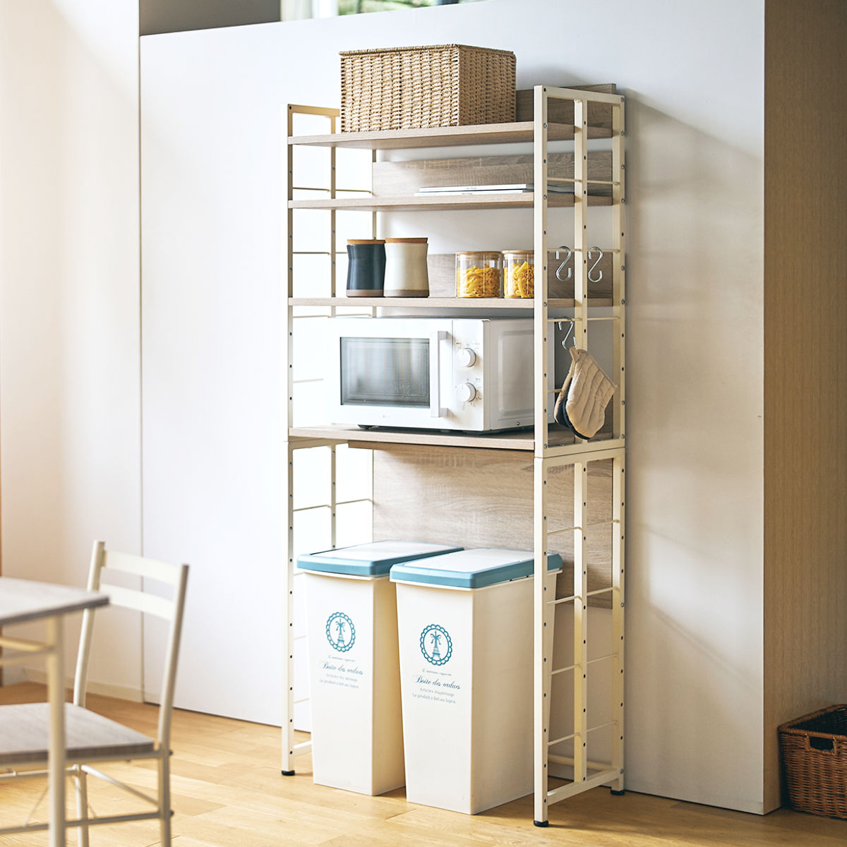キッチンやリビング、ランドリー、ワークスペースなど、家中どこでも活躍するシンプル設計のマルチラックです。キッチンラック、パントリー棚、洗面横収納、リビング収納など、使い方が変わっても、暮らしの変化に寄り添い、長く使える一台です。