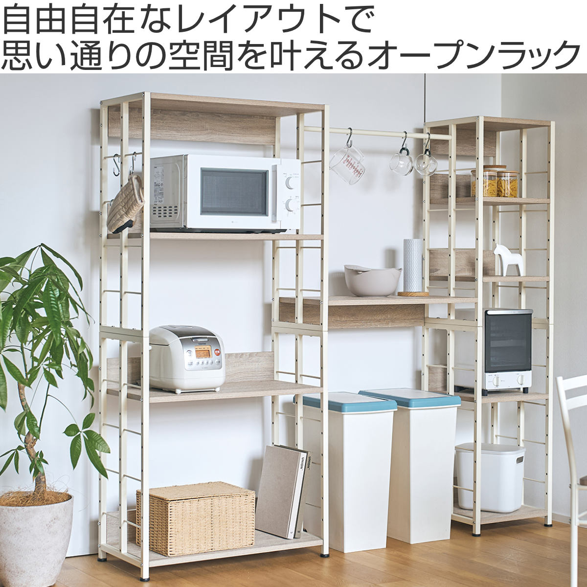 前面が開いた構造なので、キッチン家電や日用品などをさっと取り出せて便利です。背面も開放されているため、家電の配線やコードの取り回しもスムーズです。