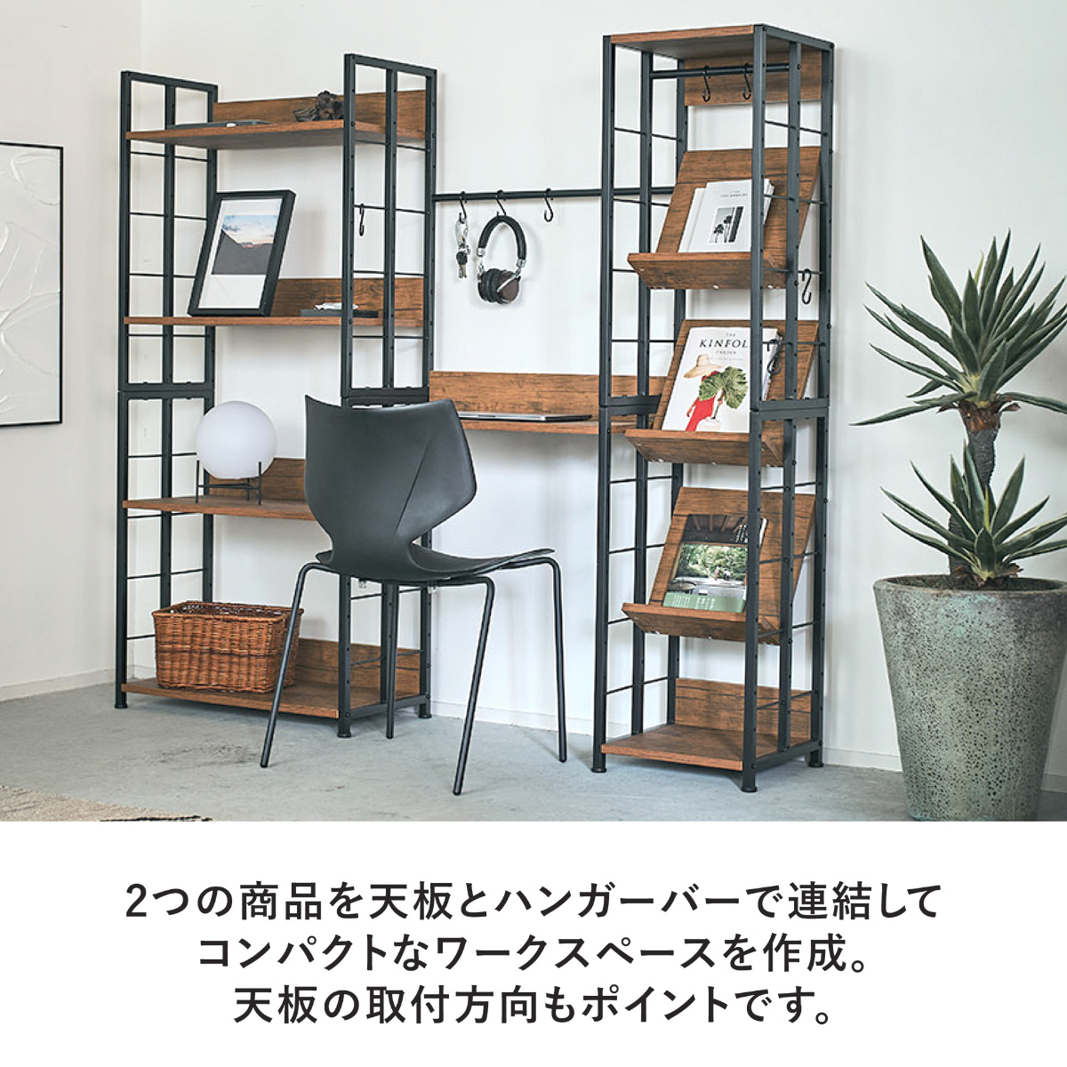 付属のハンガーバーと可動棚を連結部分に取り付けることで、サイズ違いを含む2台のラックを安定して連結できます。連結すればワイドタイプの収納ラックやデスクとして、幅広く活用可能です。