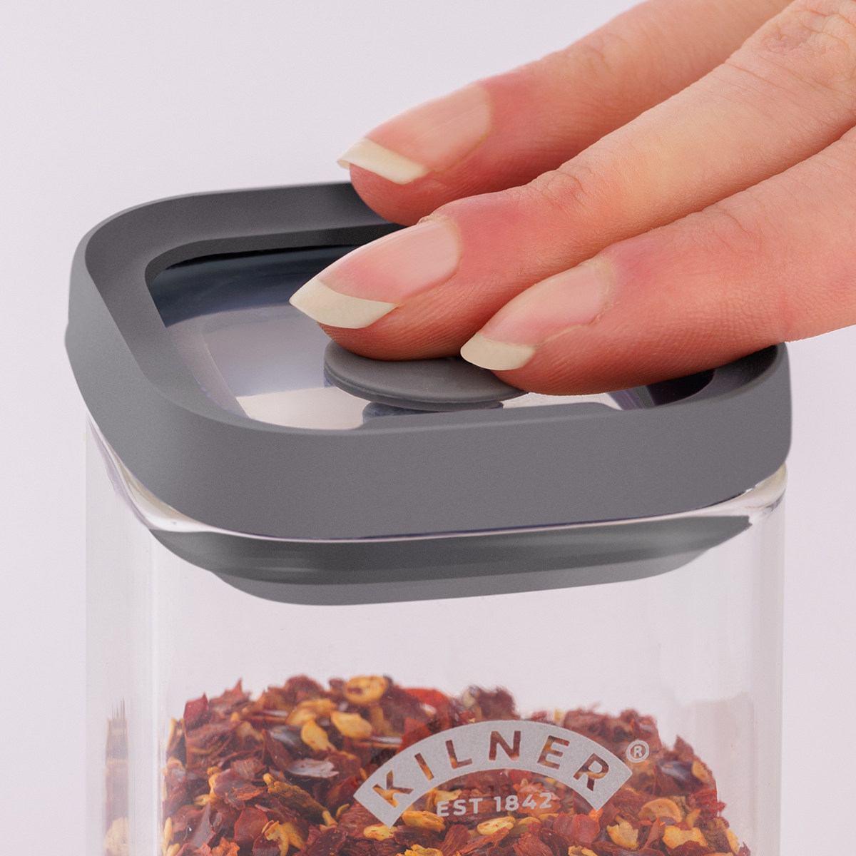 フタに付いたバルブの押し引きで簡単に密閉保存が可能です。高気密バルブで密閉性が高く、湿気を防ぐので、食材本来の「鮮度」「香り」「風味」「食感」を守ります。調味料やスパイス・乾物・ナッツなどの長期保存に最適です。