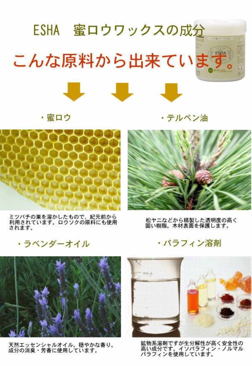 | 材質 | 原料:蜜ロウ、テルペン油、ラベンダーオイル、パラフィン溶剤 |