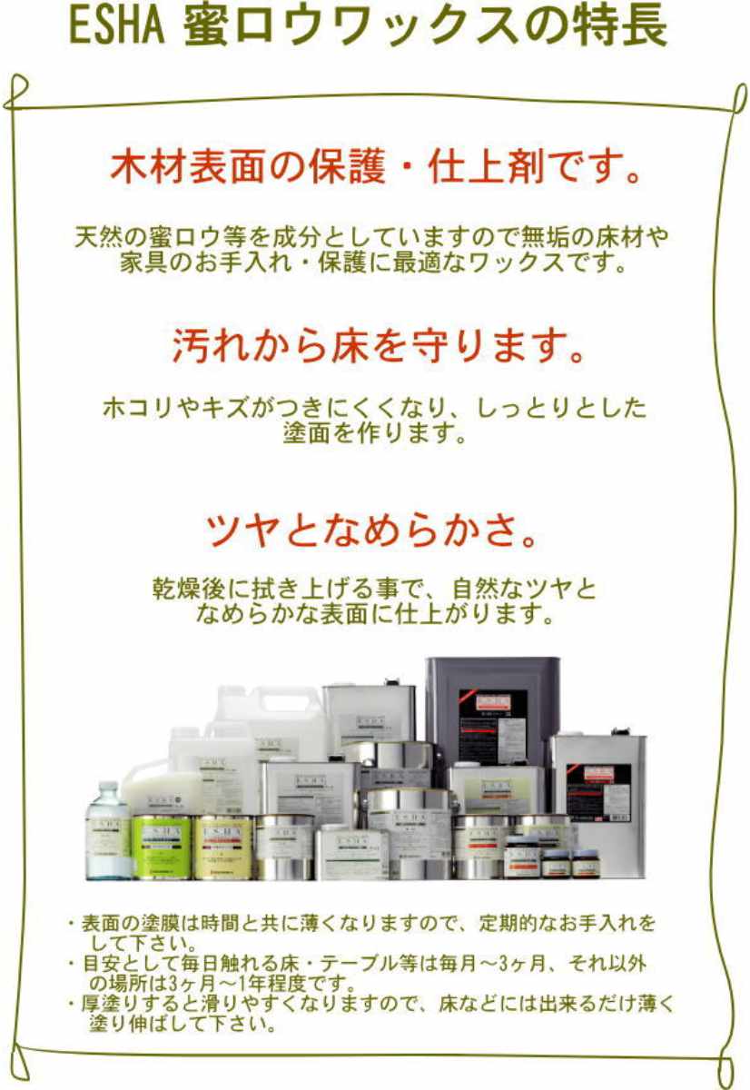 | 備考 | ワックス類・油性 標準塗布面積:30~50m2/L(1回塗り) |