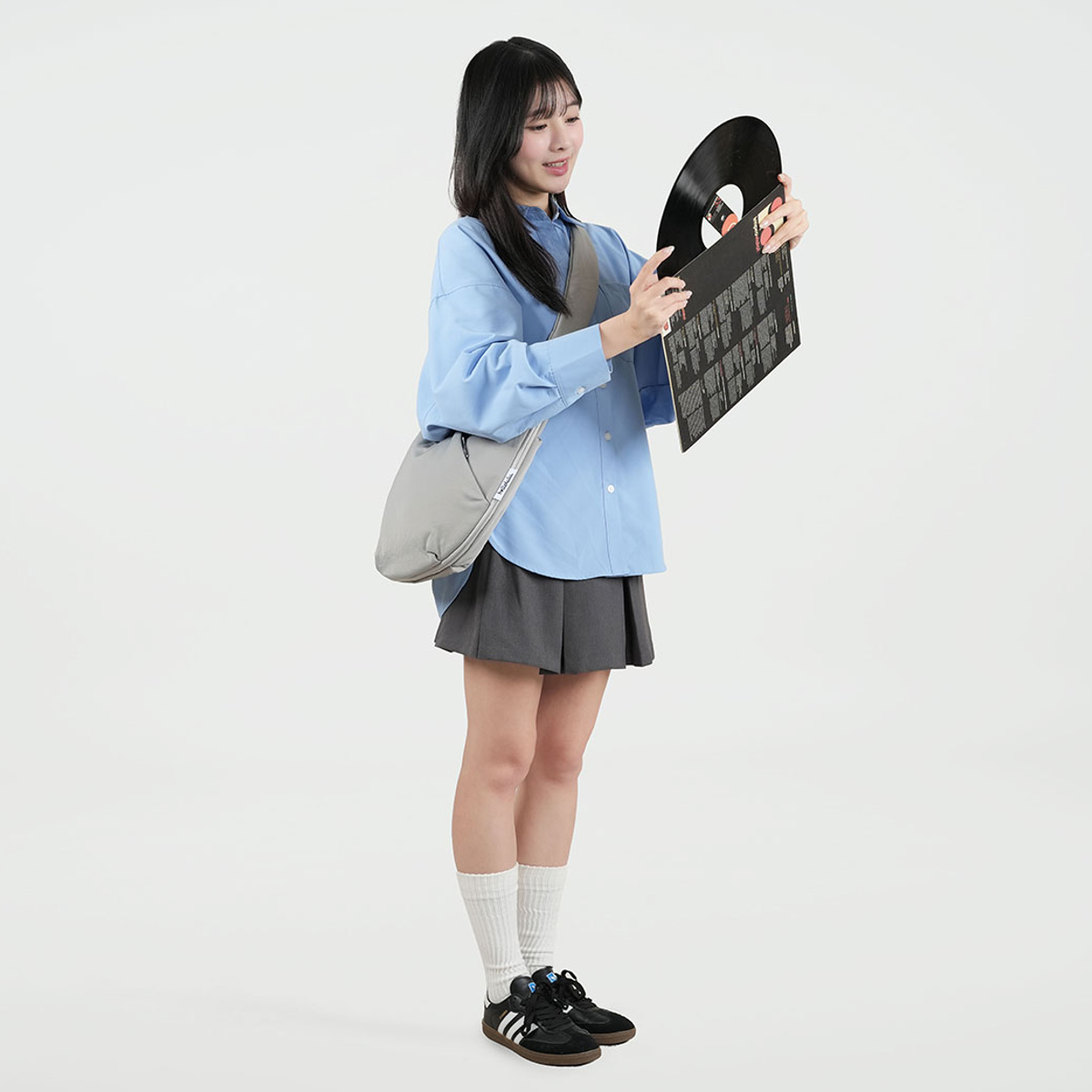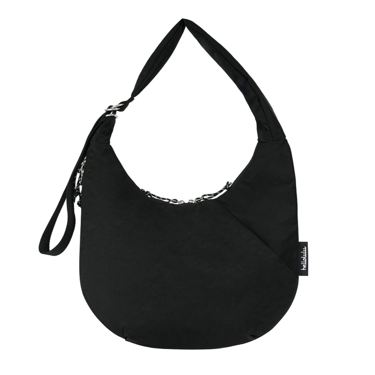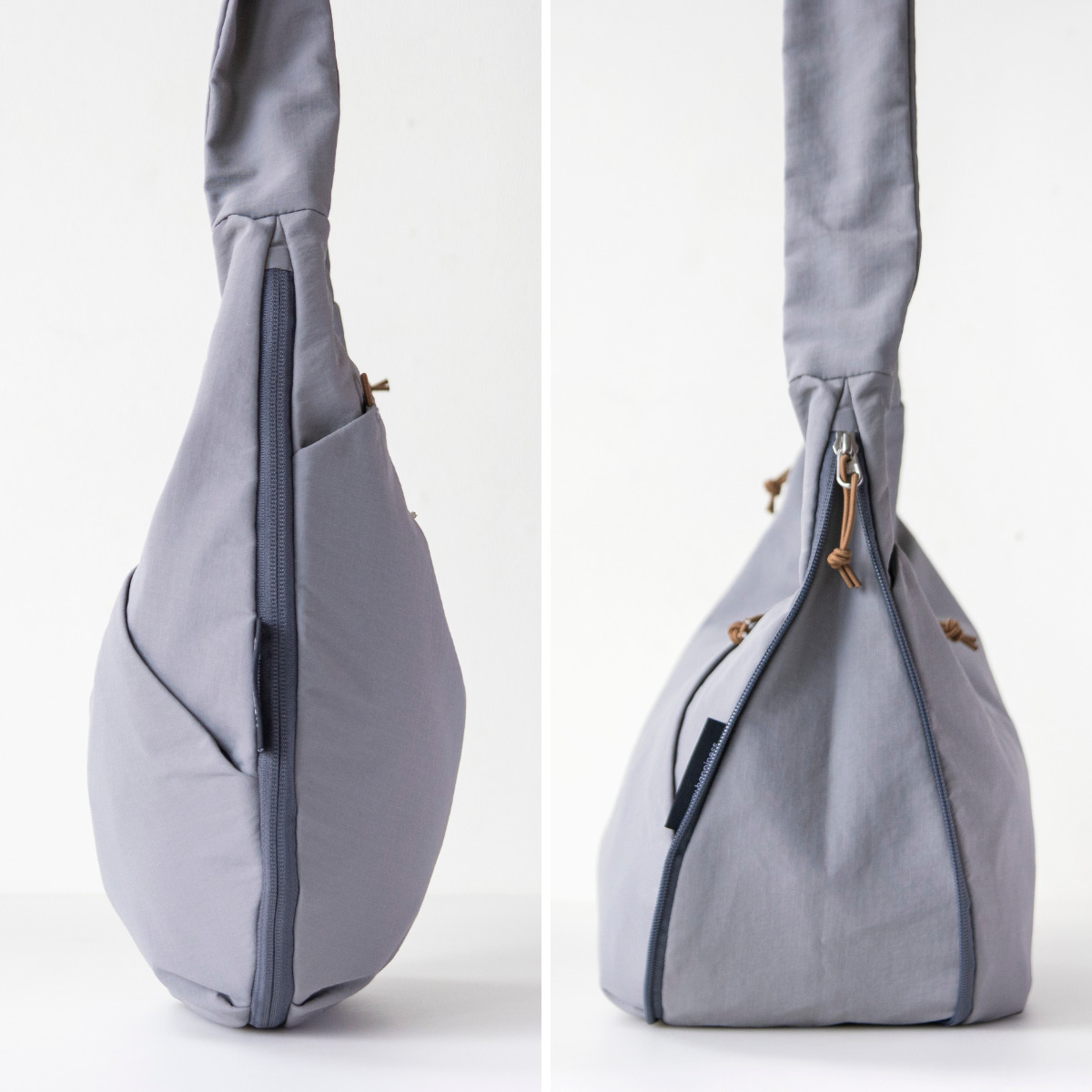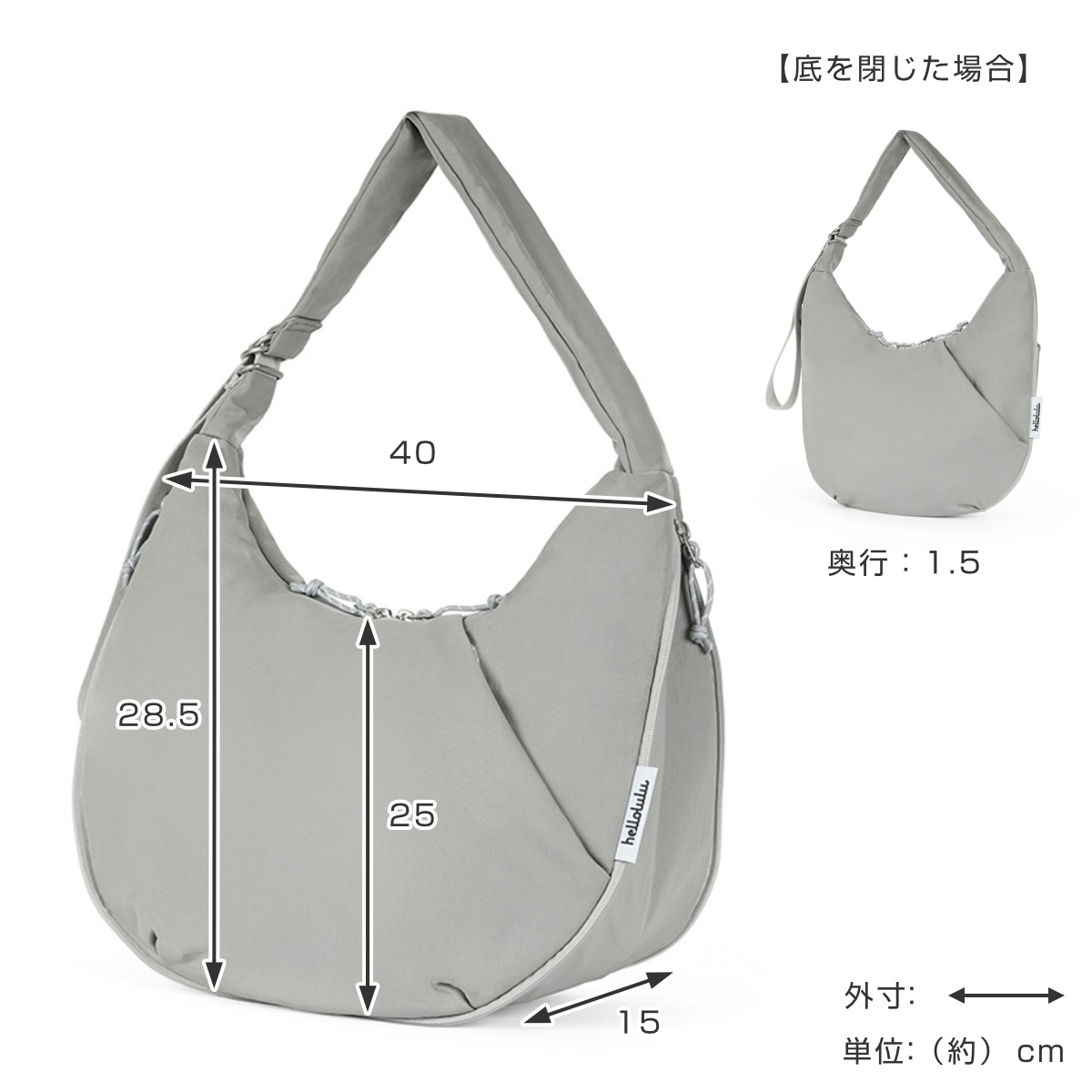 シーンに合わせて容量を変えられるハーフムーンバッグです。底部のファスナーを開くとマチができるので、荷物が増えてもこのバッグ1つで持ち運べます。