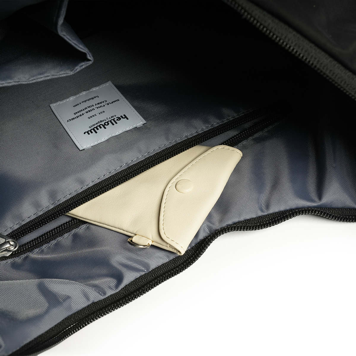 メイン収納はダブルファスナー仕様です。財布や眼鏡、ポーチなど、細々とした小物はもちろん、タブレットや折り畳み傘などの大きい持ち物も入れられます。