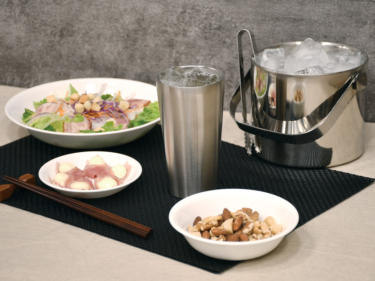 居酒屋気分を手軽に楽しめるビンテージバーシリーズです。落ち着いた風合いのデザインが、家呑みの時間をおしゃれに演出します。保温・保冷の両方に対応しているため、ビールやハイボールはもちろん、温かい飲み物にもお使いいただけます。