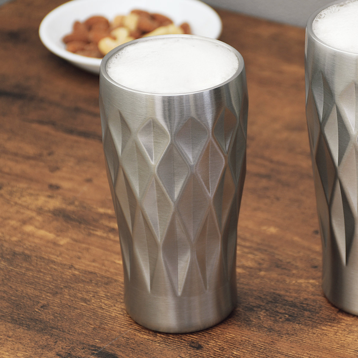 350ml缶ビールにちょうど良い容量設計で、注いだ瞬間の泡立ちから最後の一口まで、最適な量を美味しく楽しめます。洗練されたダイヤカットデザインが上質な印象を演出し、普段使いはもちろん、来客時のおもてなしにも使えるタンブラーです。