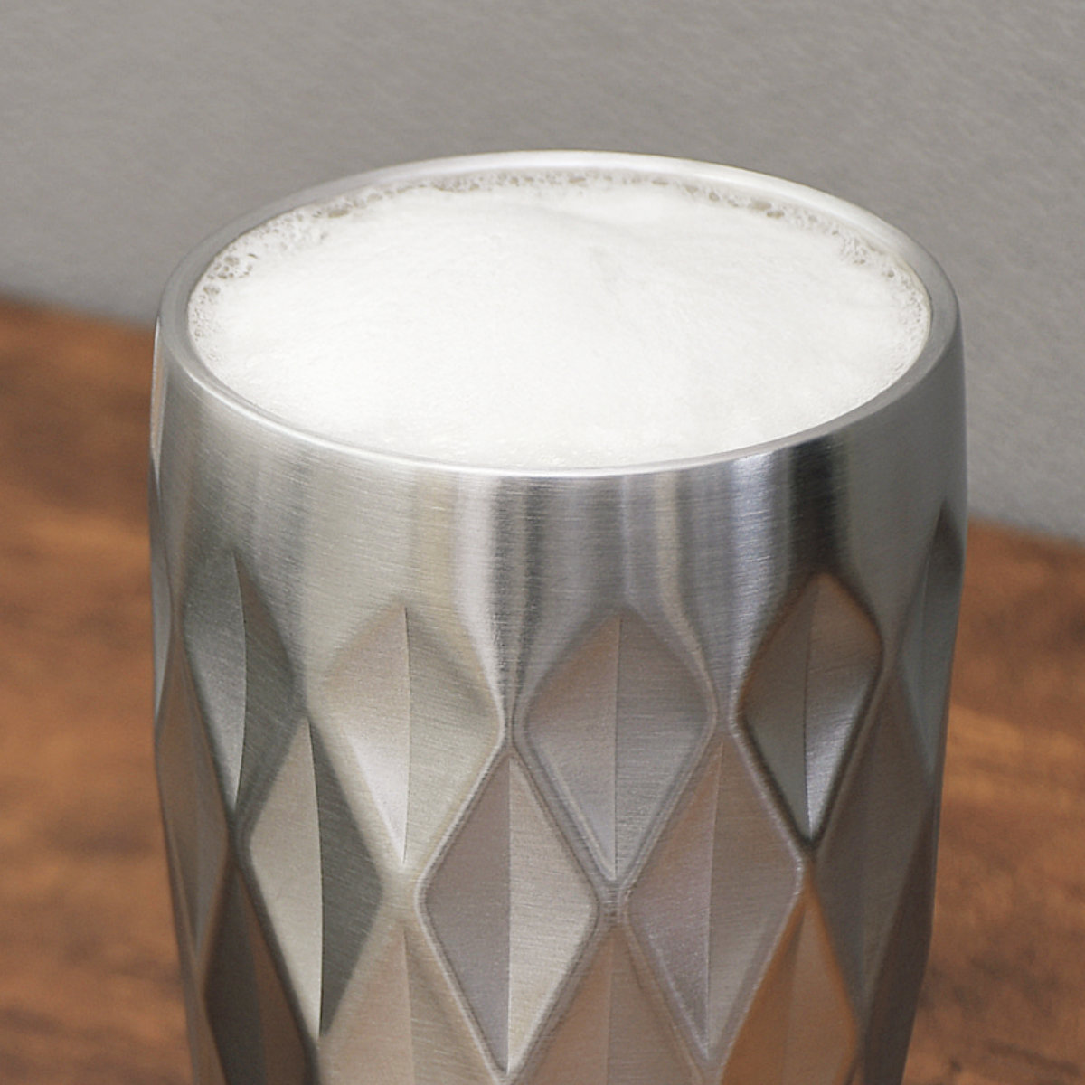 真空断熱構造を採用したステンレス製タンブラーで、冷たいビールの温度を長時間キープします。長時間置いてもテーブルが結露で濡れる心配はありません。