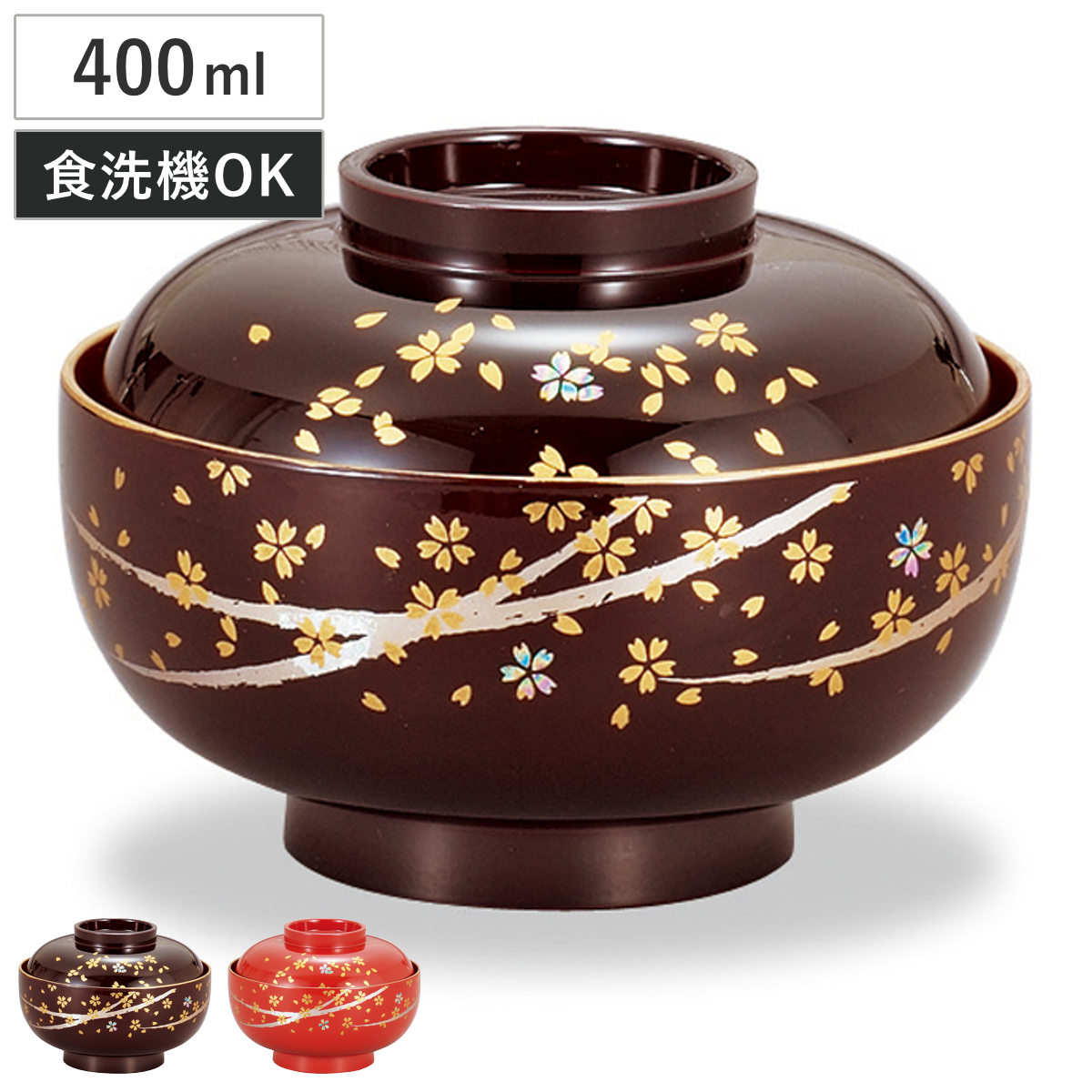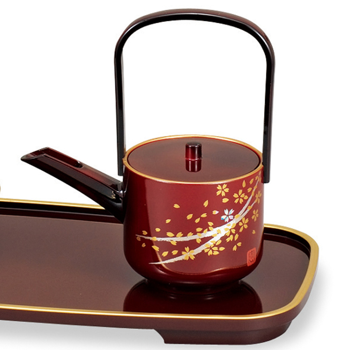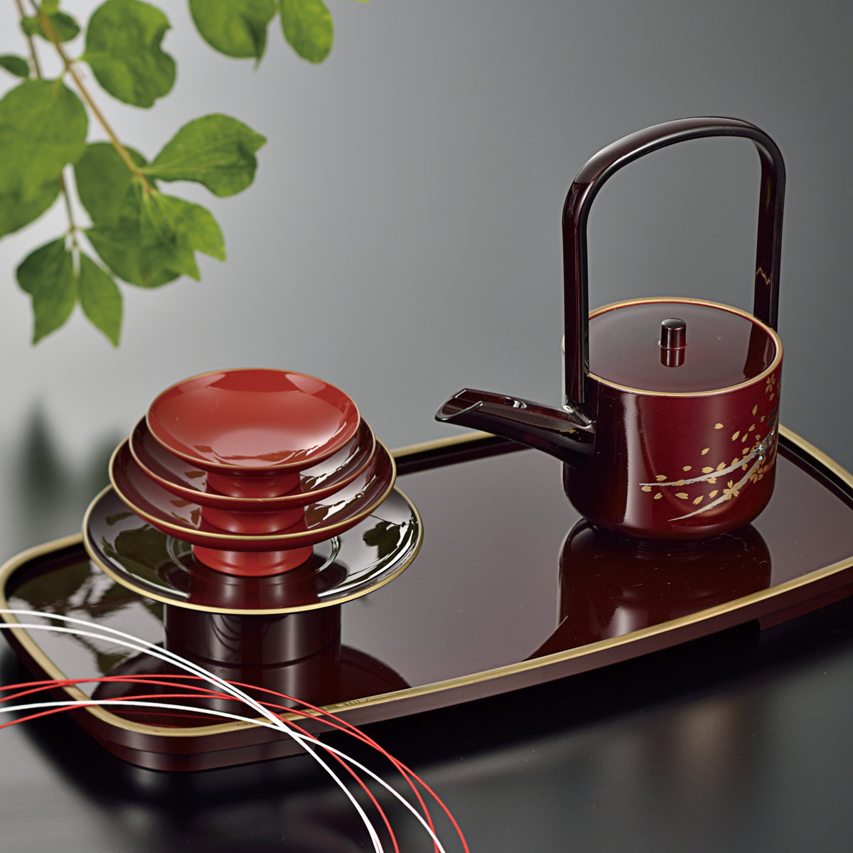 夜桜が舞うように、黒朱溜色に艶やかな 桜の花びらが流れるように浮かぶはるかシリーズ。 少しかしこまった大切な日、お正月、桃の節句にも使え、祝いの席を華やかに彩ります。