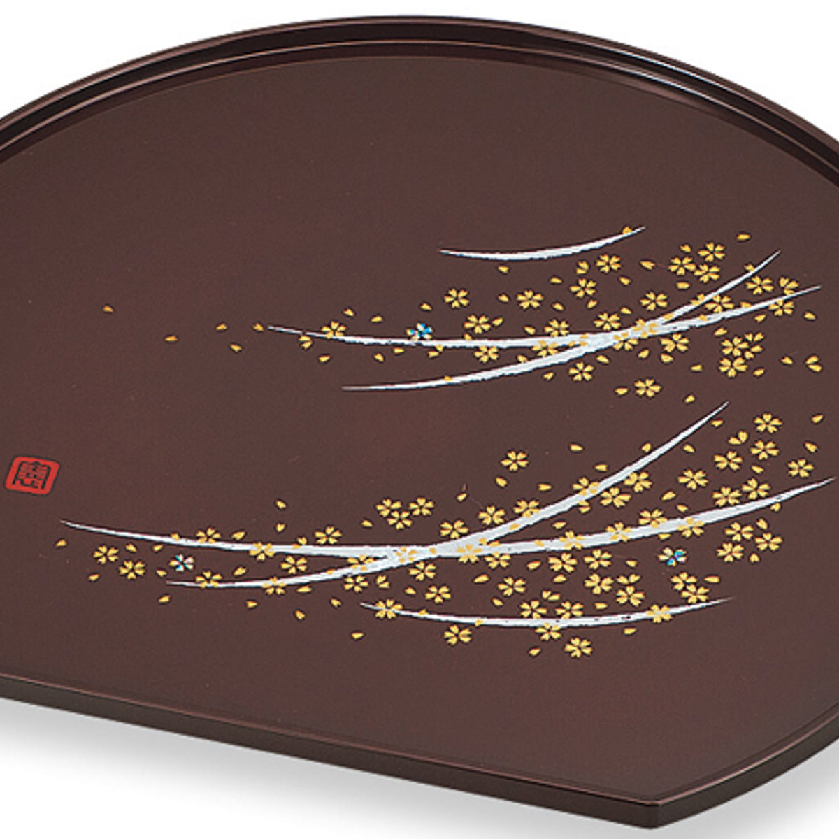 夜桜が舞うように、黒朱溜色に艶やかな桜の花びらが流れるように浮かぶはるかシリーズ。 少しかしこまった大切な日、お正月、桃の節句にも使え、祝いの席を華やかに彩ります。