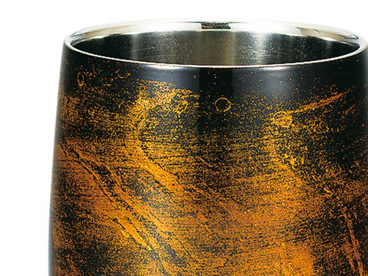漆磨カップは、最高級18-8ステンレス(日本製)を新潟県燕市で成型し、外側には石川県の伝統工芸山中漆器で培われた、塗りの技術を取り入れました。漆芸調の落ち着いた風合いと、味わい深い高級感を備えた逸品に仕上げました。