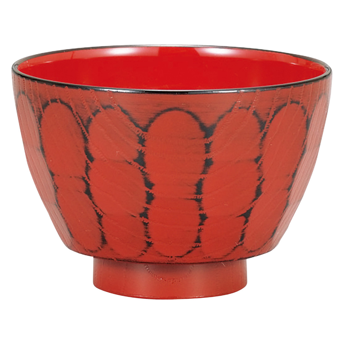 樹脂製で軽くて割れにくい汁椀です。表面には亀甲模様を思わせる細やかな凹凸があり手に馴染みます。味噌汁やお吸い物など普段使いに最適です。