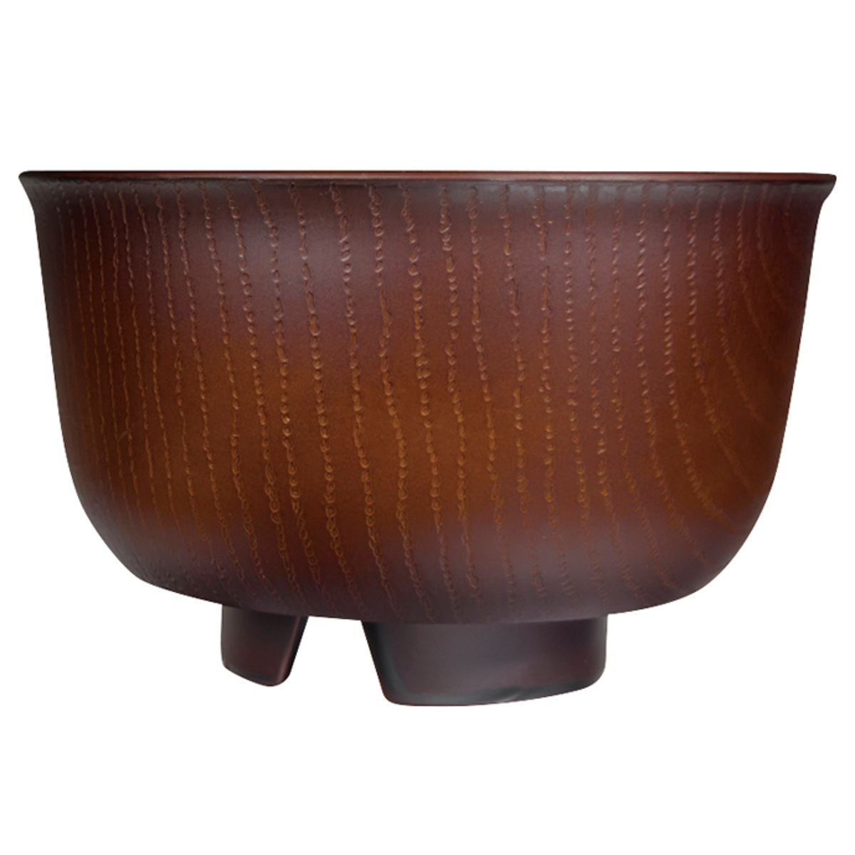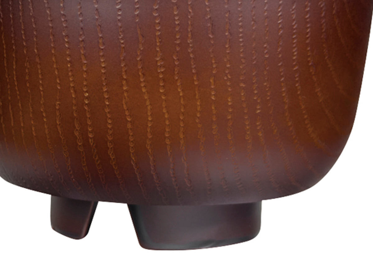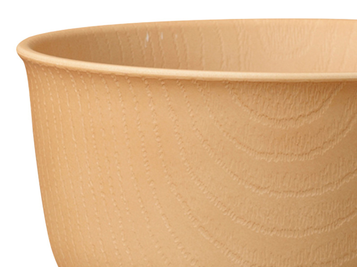 器の内側と外側には木目調のデザインが施されています。食卓に馴染みやすく、温かい雰囲気に包まれるような、ぬくもりを感じられるデザインです。