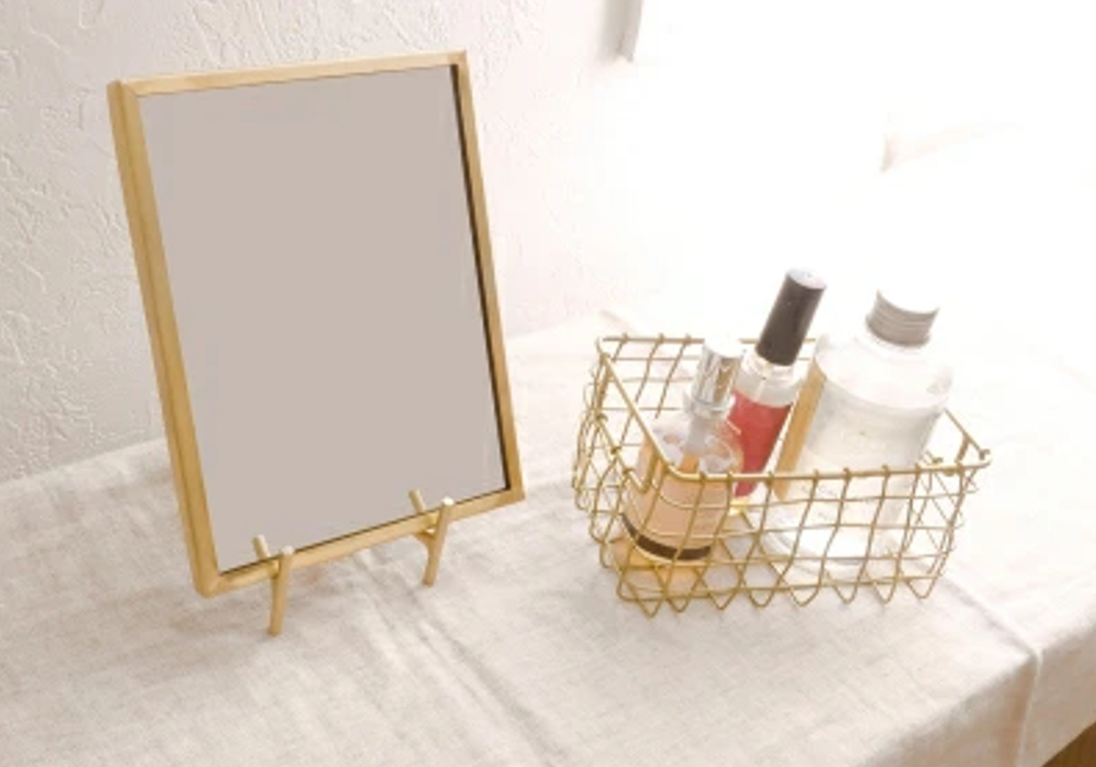 真鍮のフレームが柔らかく輝く美しいミラーです。そこに置いておくだけでインテリアになるような上品な佇まいが魅力です。