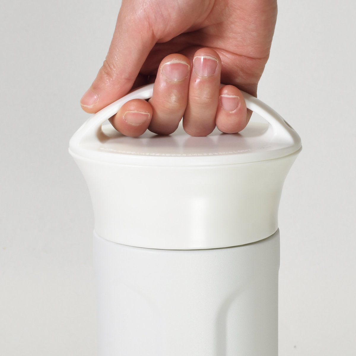 キャップには持ち運びに便利なハンドルが付いており、片手でも安定して持てます。アウトドアでも扱いやすいです。