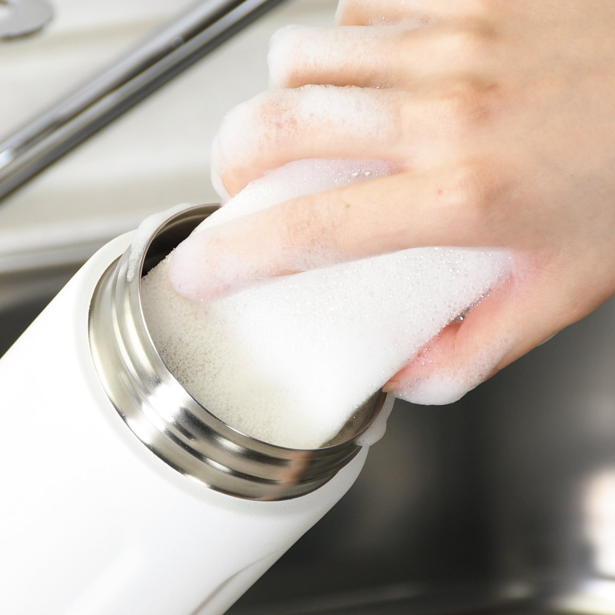 ●大口径設計で内部までしっかり洗えて清潔に使えます。