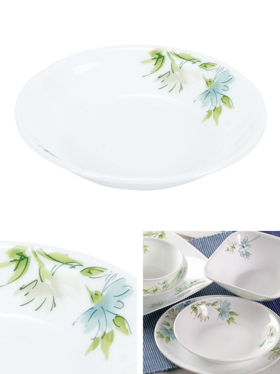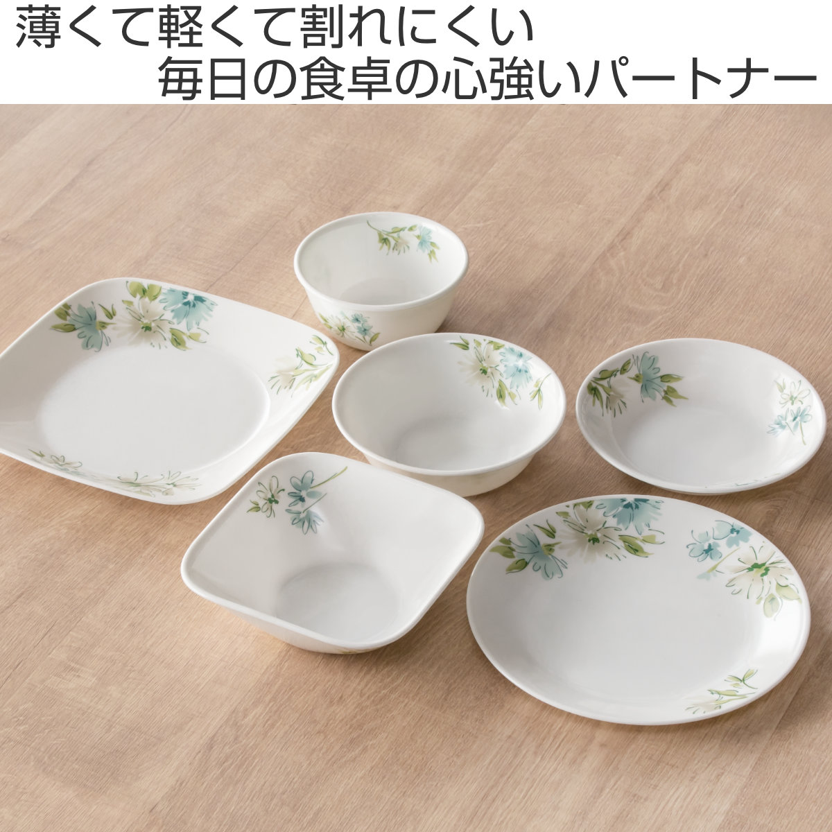 1970年アメリカで誕生したコレールは、世界初の欠け・破損に耐性がある全面積層強化ガラスの食器として、50か国以上のご家庭で愛用されているブランドです。「フェアリーフローラ」シリーズは、アメリカンモダンなデニムをイメージした爽やかな花柄。お料理をより一層引き立てます。