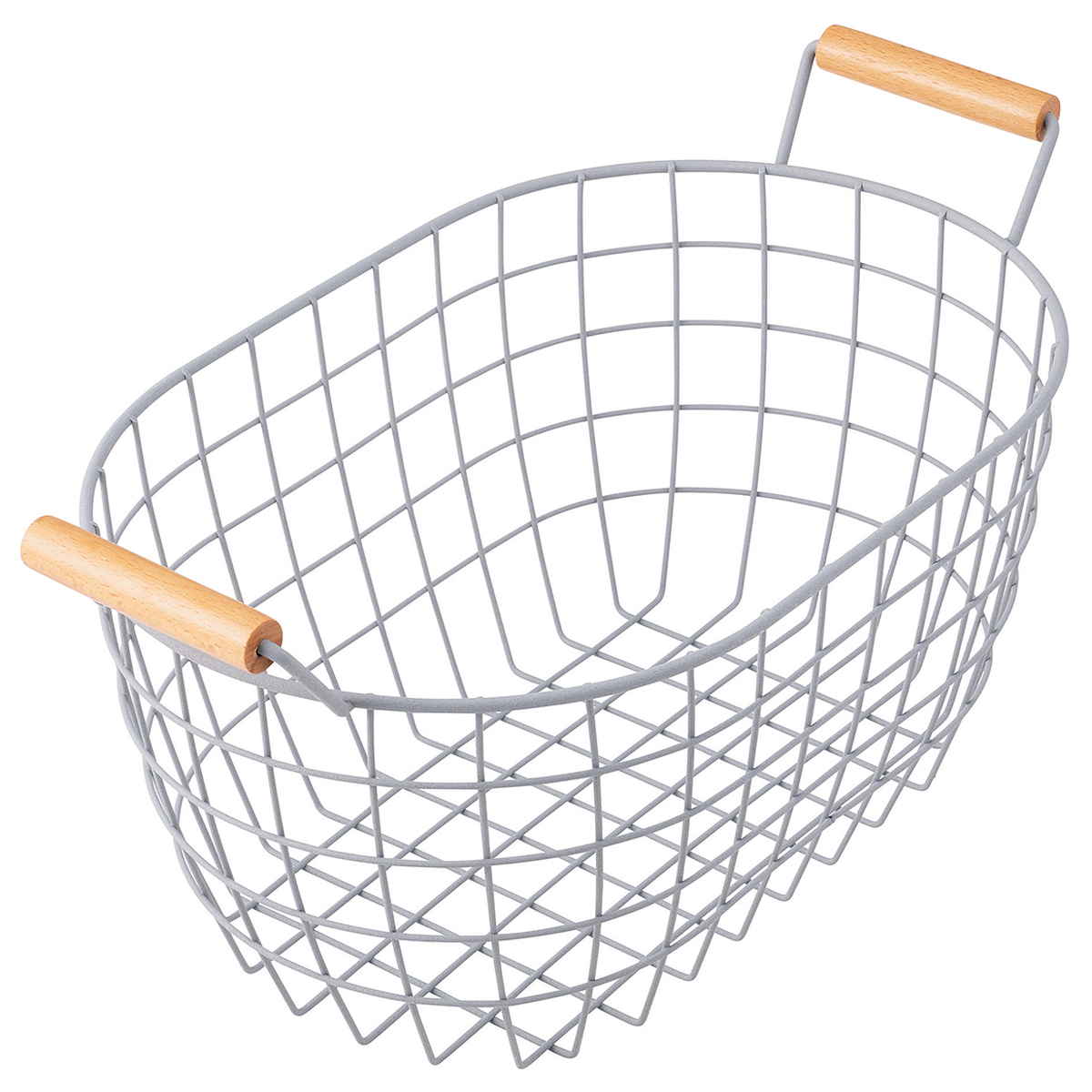 天然木の持ち手とスチールのワイヤーフレームを組み合わせた、無駄のない洗練されたデザインのワイヤーバスケットです。 置くだけで空間をすっきり心地よく整えます。日用品の整理からランドリー、キッチン、リビング収納まで幅広く活躍し、生活感を抑えながら使い勝手の良さも叶えるアイテムです。